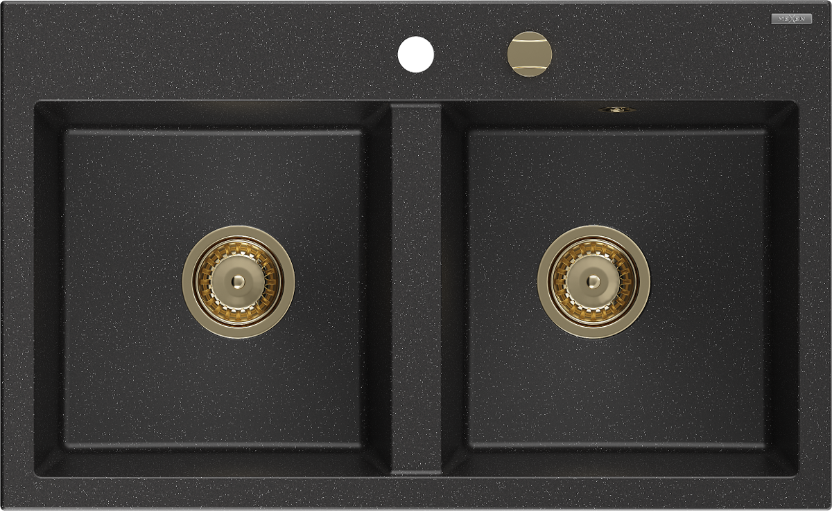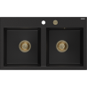 Mexen Hektor zlewozmywak granitowy 2-komorowy 800 x 480 mm, czarny/srebrny metalik, syfon złoty - 6521802000-73-G