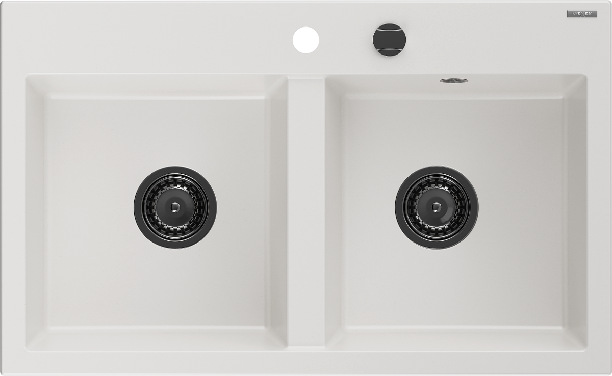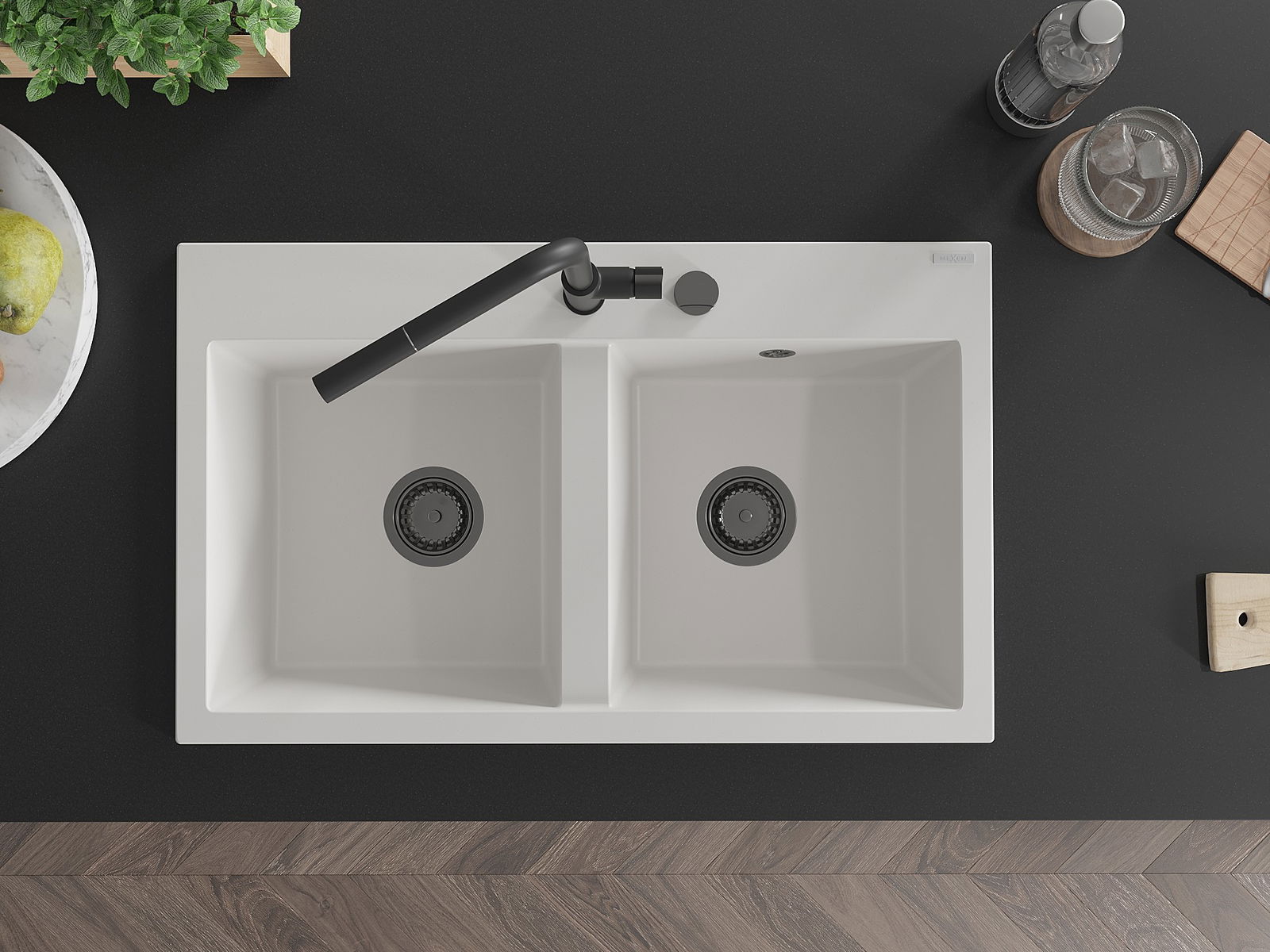 Mexen Hektor zlewozmywak granitowy 2-komorowy 800 x 480 mm, biały, syfon czarny - 6521802000-20-B