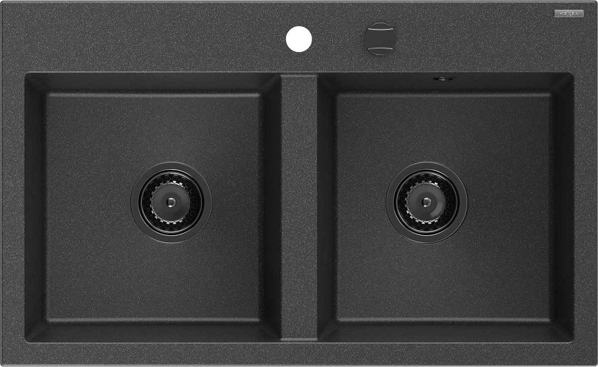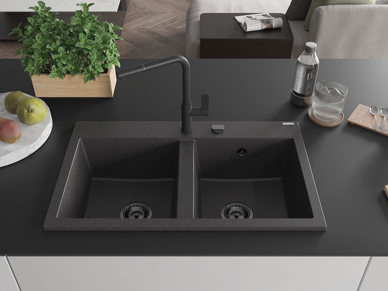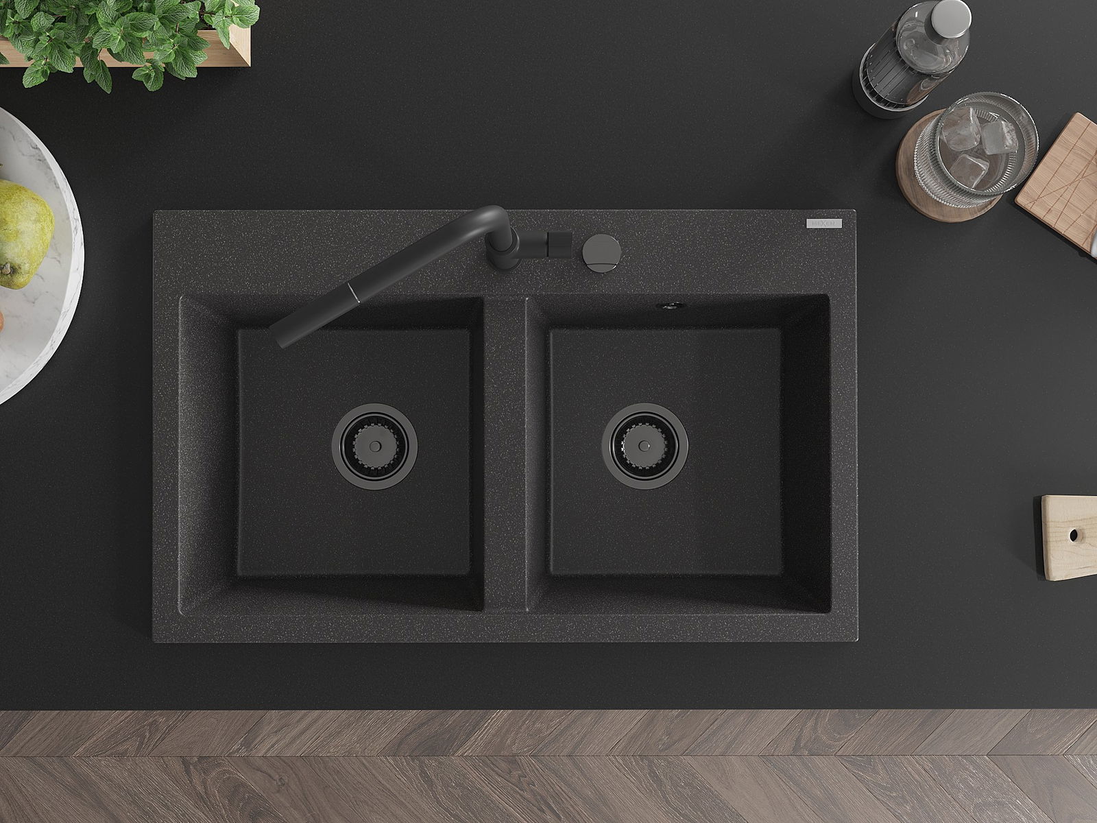 Mexen Hektor zlewozmywak granitowy 2-komorowy 800 x 480 mm, czarny nakrapiany, syfon czarny - 6521802000-76-B
