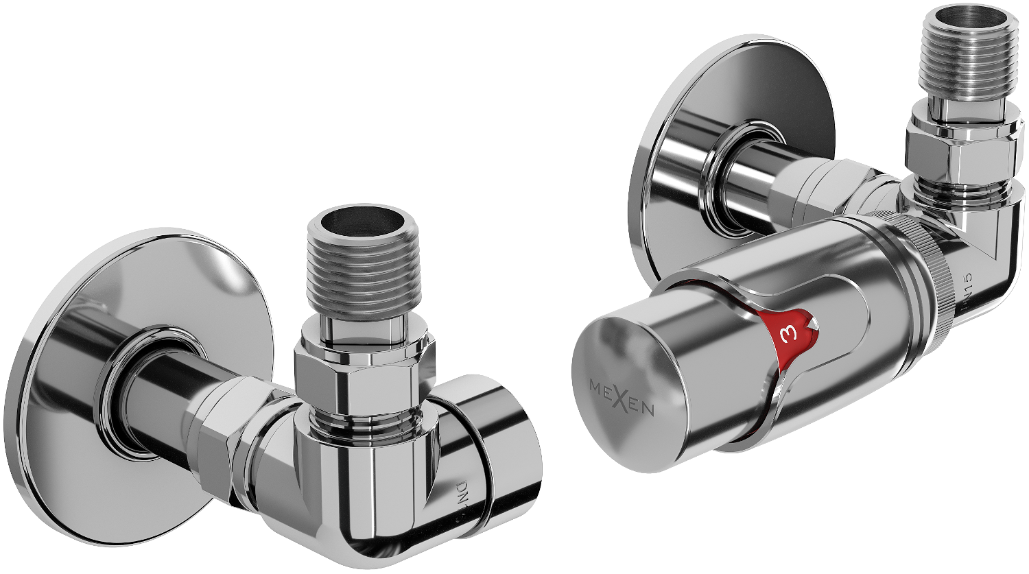 W komplecie zawór grzejnikowy zasilający i odcinający