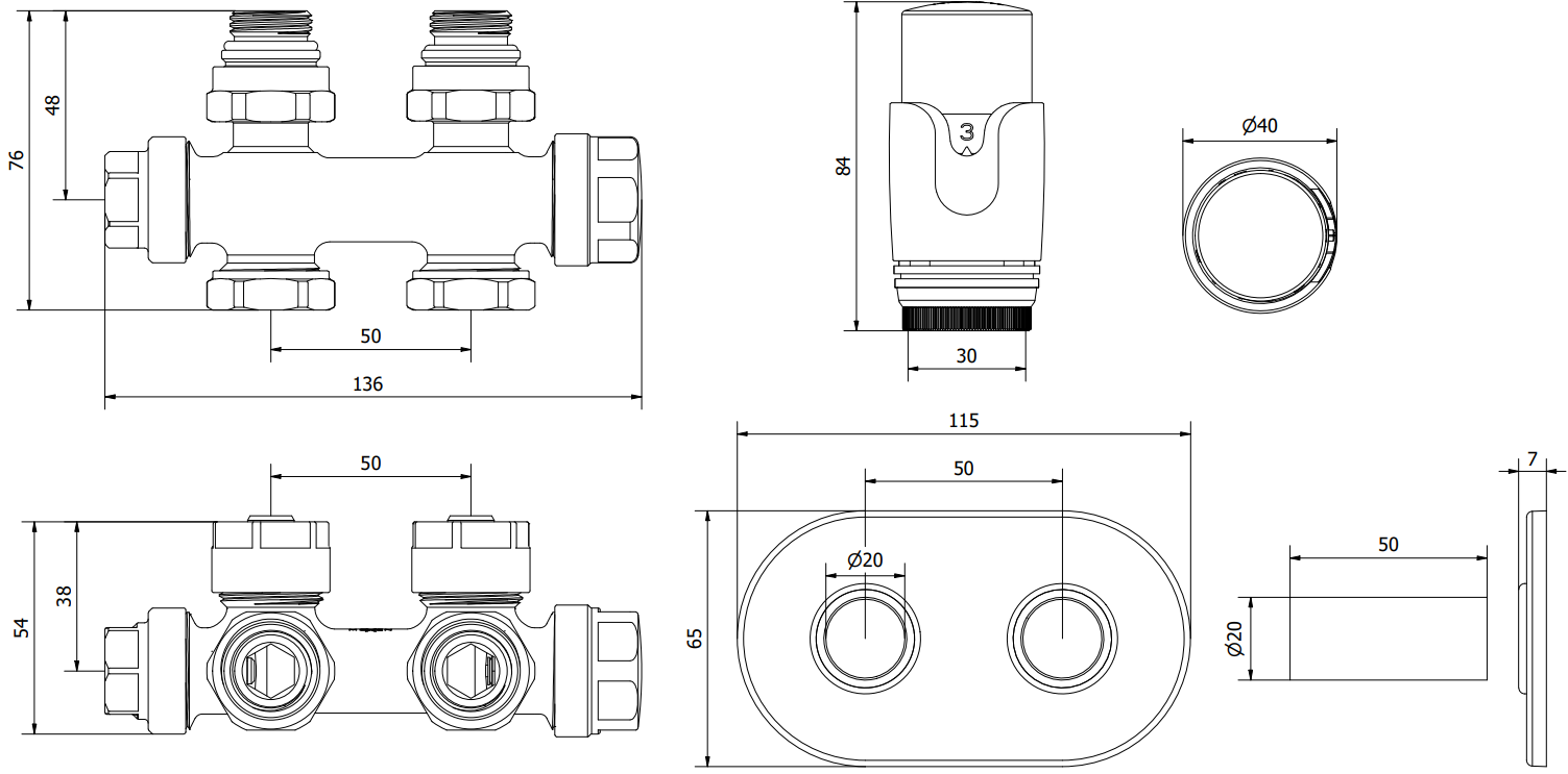 Podłączenie dolne o rozstawie 50 mm