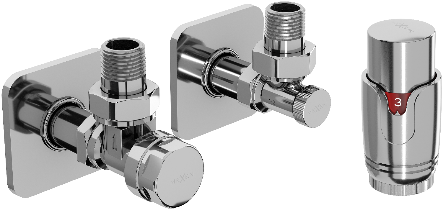 W komplecie zawór grzejnikowy zasilający i odcinający