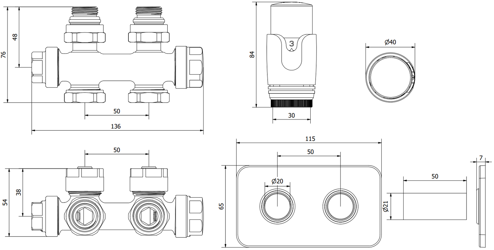 Podłączenie dolne o rozstawie 50 mm