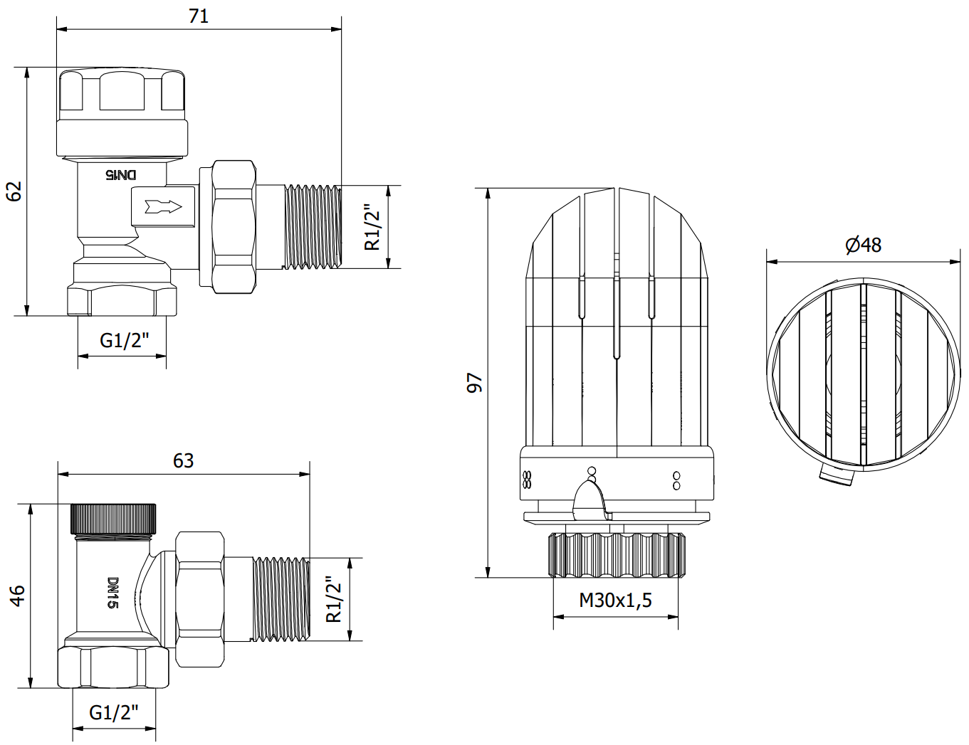W komplecie zawór grzejnikowy zasilający i odcinający