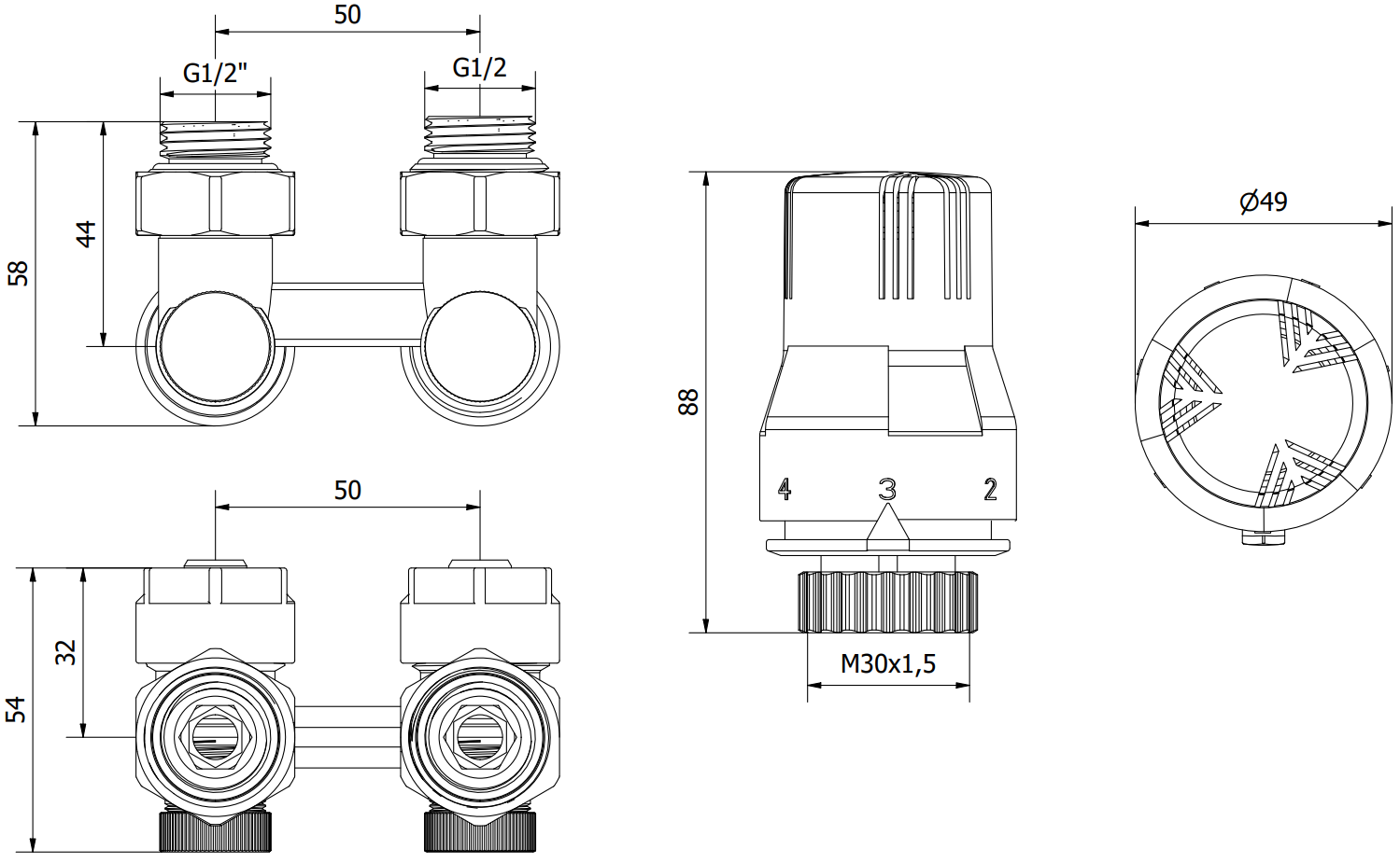 Zawór grzejnikowy zasilający i odcinający