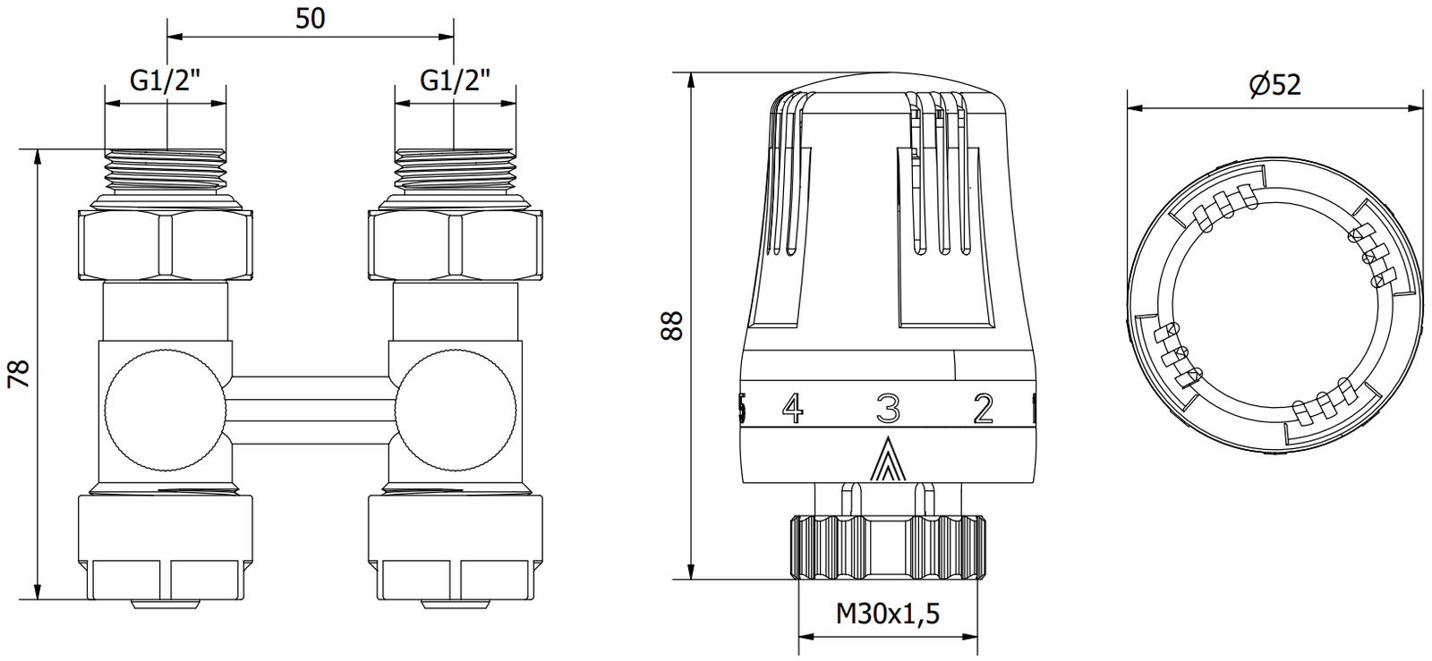 Średnica przyłącza: G 1/2" i pex 16x2 mm