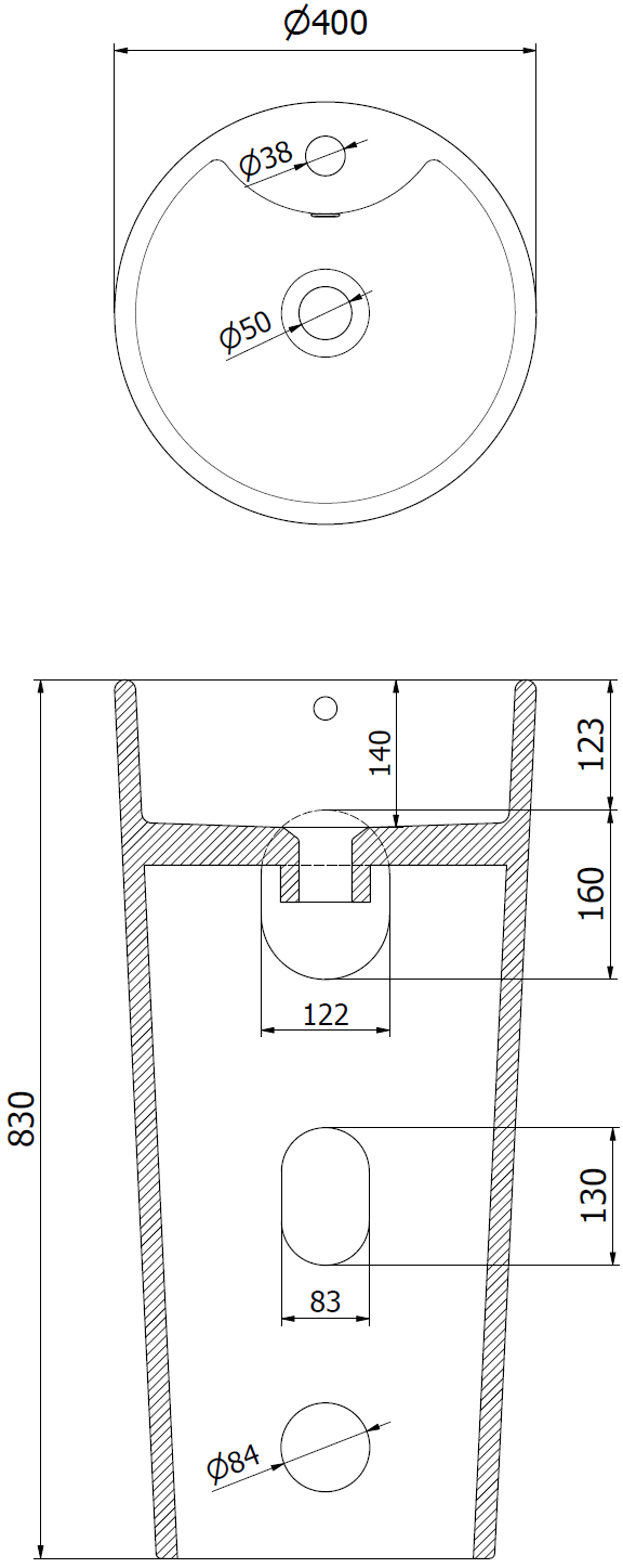 Umywalka posiada otwór, w którym możemy zamontować baterię. Pozwala to zaoszczędzić cenną przestrzeń w łazience oraz podkreślić jej estetykę. Rozwiązanie to umożliwia również łatwiejsze utrzymanie czystości wokół umywalki.