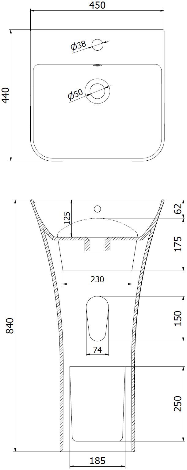 Umywalka posiada otwór, w którym możemy zamontować baterię. Pozwala to zaoszczędzić cenną przestrzeń w łazience oraz podkreślić jej estetykę. Rozwiązanie to umożliwia również łatwiejsze utrzymanie czystości wokół umywalki.