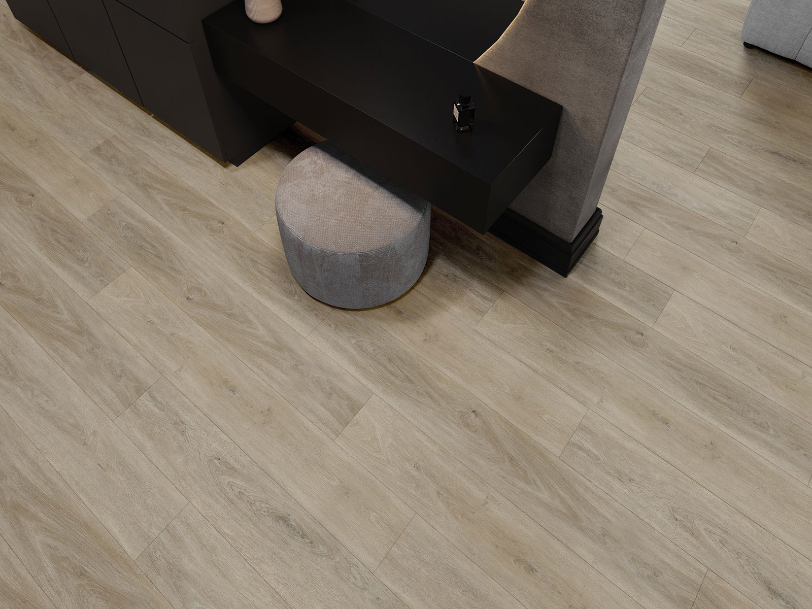 Panele posiadają 4-stronną fugę - każdy bok został wyfrezowany w taki sposób, by po ułożeniu powstało łączenie w kształcie litery V. Taki design sprawia, że podłoga nabiera wyraźniejszej struktury, co nadaje jej głębi i estetycznego charakteru. Efekt ten jest szczególnie ceniony w nowoczesnych aranżacjach, gdzie detale podkreślają wyjątkowy wygląd wnętrza.