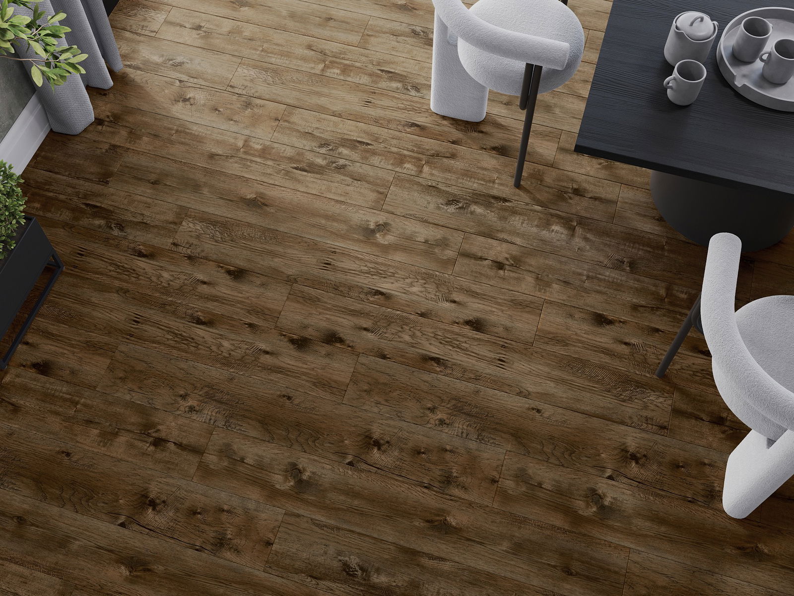 Panele posiadają 4-stronną fugę - każdy bok został wyfrezowany w taki sposób, by po ułożeniu powstało łączenie w kształcie litery V. Taki design sprawia, że podłoga nabiera wyraźniejszej struktury, co nadaje jej głębi i estetycznego charakteru. Efekt ten jest szczególnie ceniony w nowoczesnych aranżacjach, gdzie detale podkreślają wyjątkowy wygląd wnętrza.