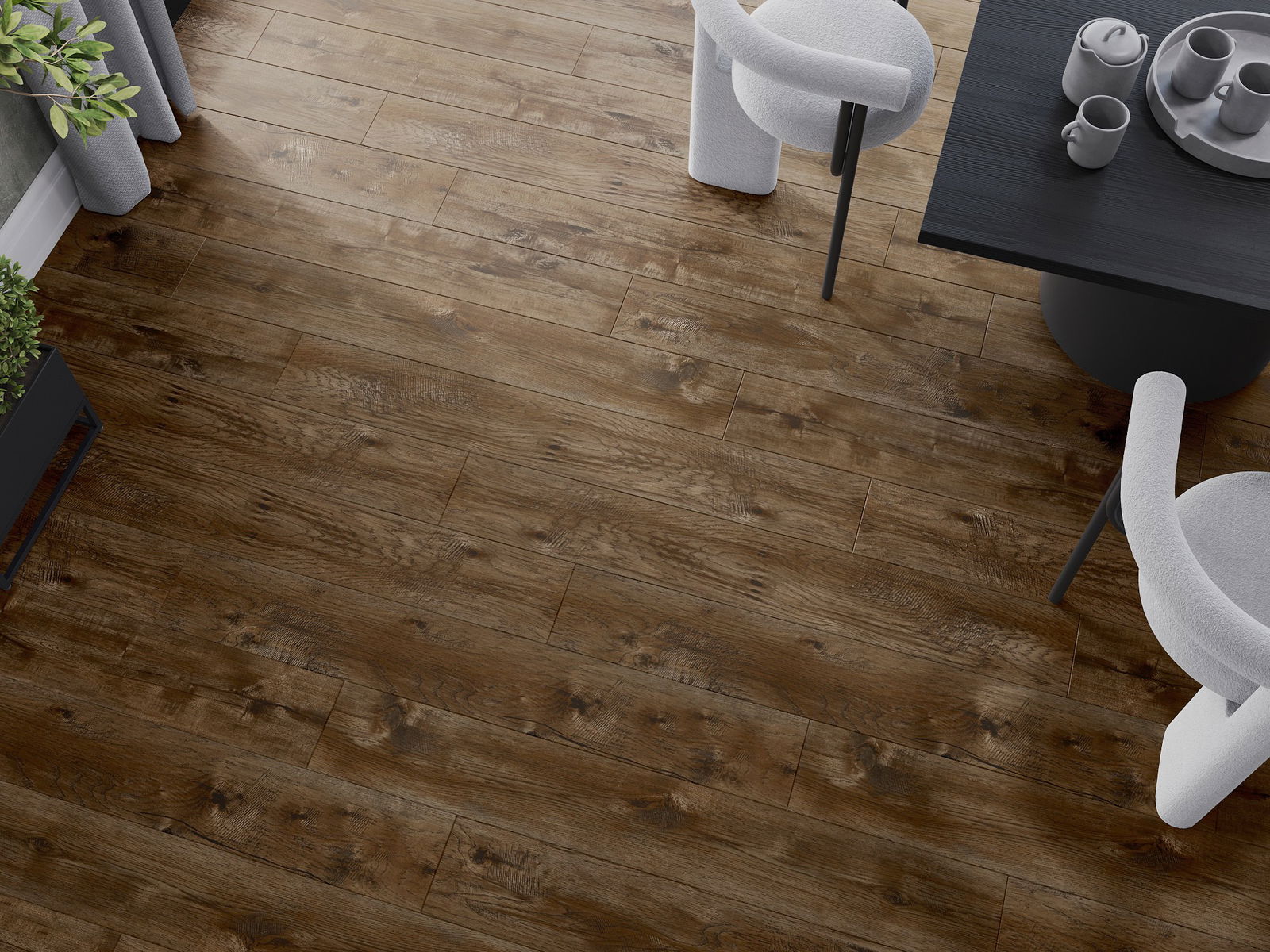 Panele posiadają 4-stronną fugę - każdy bok został wyfrezowany w taki sposób, by po ułożeniu powstało łączenie w kształcie litery V. Taki design sprawia, że podłoga nabiera wyraźniejszej struktury, co nadaje jej głębi i estetycznego charakteru. Efekt ten jest szczególnie ceniony w nowoczesnych aranżacjach, gdzie detale podkreślają wyjątkowy wygląd wnętrza.