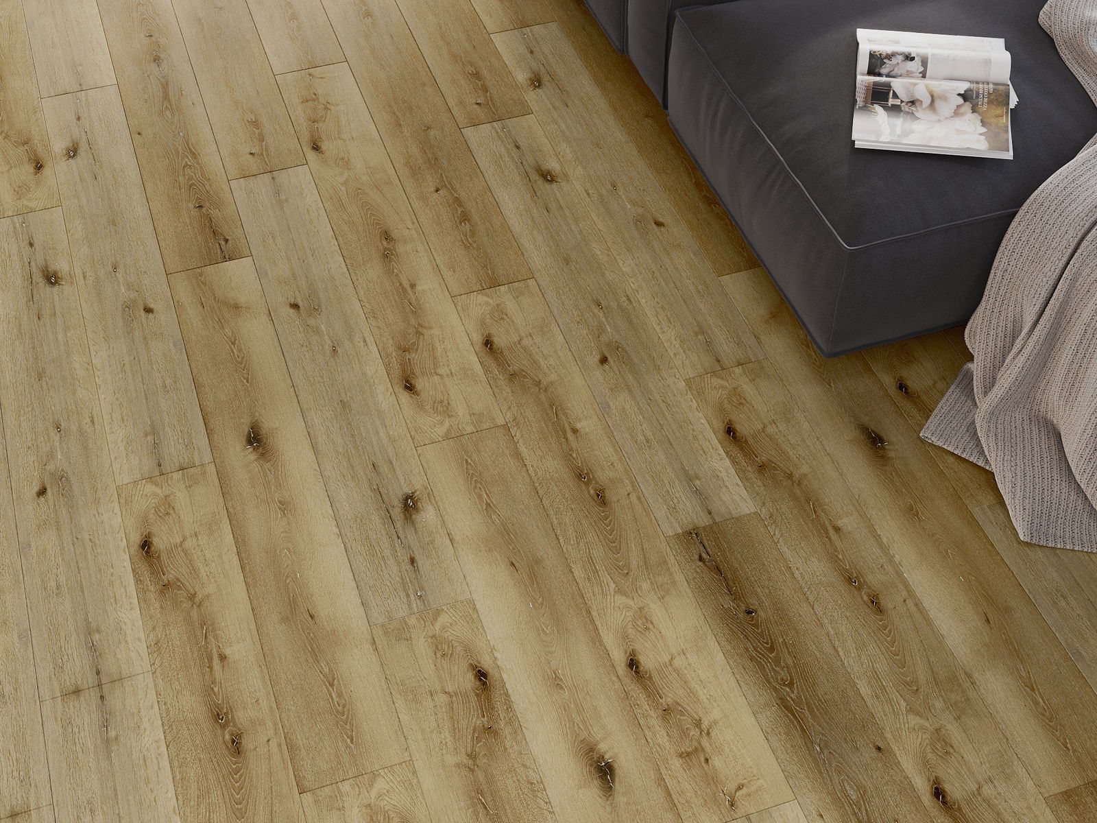 Panele posiadają 4-stronną fugę - każdy bok został wyfrezowany w taki sposób, by po ułożeniu powstało łączenie w kształcie litery V. Taki design sprawia, że podłoga nabiera wyraźniejszej struktury, co nadaje jej głębi i estetycznego charakteru. Efekt ten jest szczególnie ceniony w nowoczesnych aranżacjach, gdzie detale podkreślają wyjątkowy wygląd wnętrza.