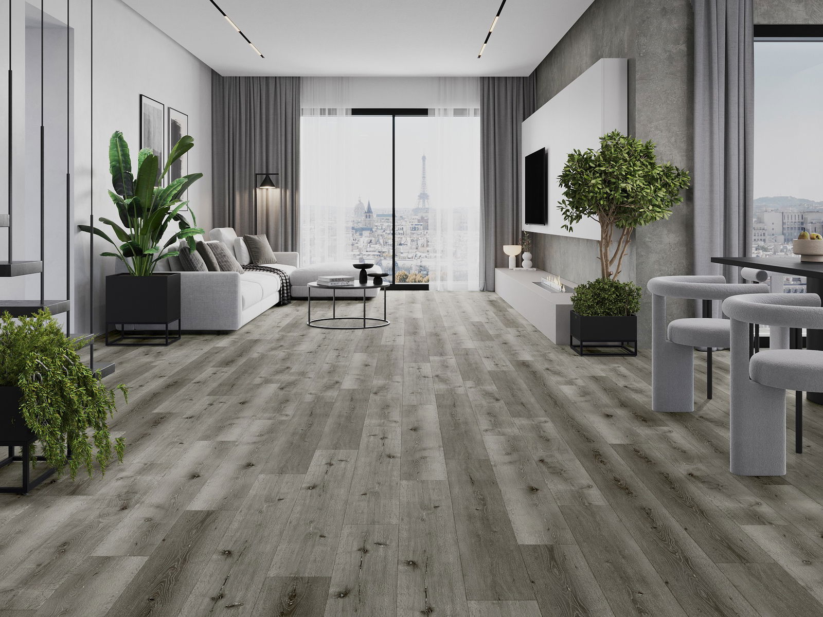 Panele posiadają 4-stronną fugę - każdy bok został wyfrezowany w taki sposób, by po ułożeniu powstało łączenie w kształcie litery V. Taki design sprawia, że podłoga nabiera wyraźniejszej struktury, co nadaje jej głębi i estetycznego charakteru. Efekt ten jest szczególnie ceniony w nowoczesnych aranżacjach, gdzie detale podkreślają wyjątkowy wygląd wnętrza.