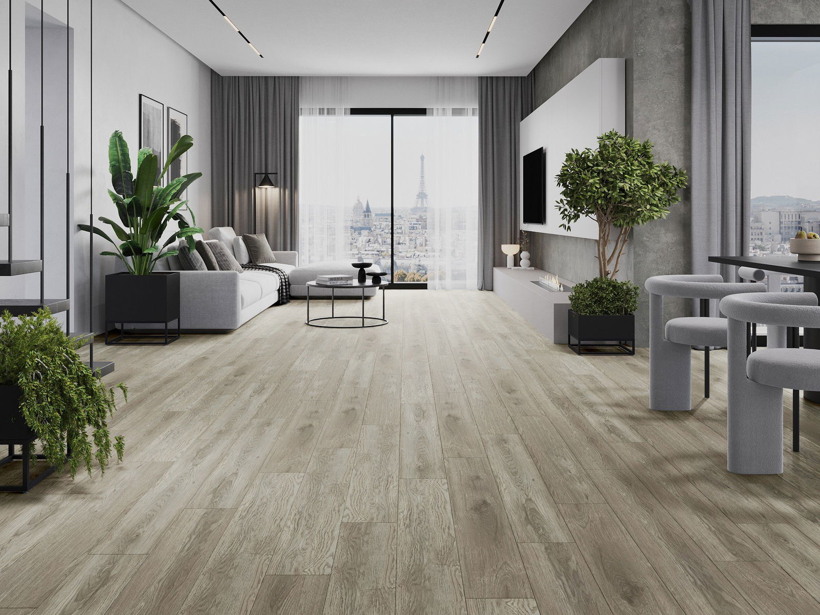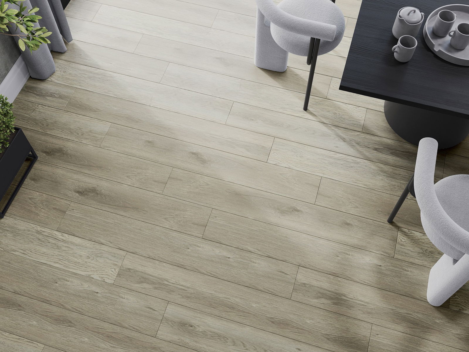 Panele posiadają 4-stronną fugę - każdy bok został wyfrezowany w taki sposób, by po ułożeniu powstało łączenie w kształcie litery V. Taki design sprawia, że podłoga nabiera wyraźniejszej struktury, co nadaje jej głębi i estetycznego charakteru. Efekt ten jest szczególnie ceniony w nowoczesnych aranżacjach, gdzie detale podkreślają wyjątkowy wygląd wnętrza.