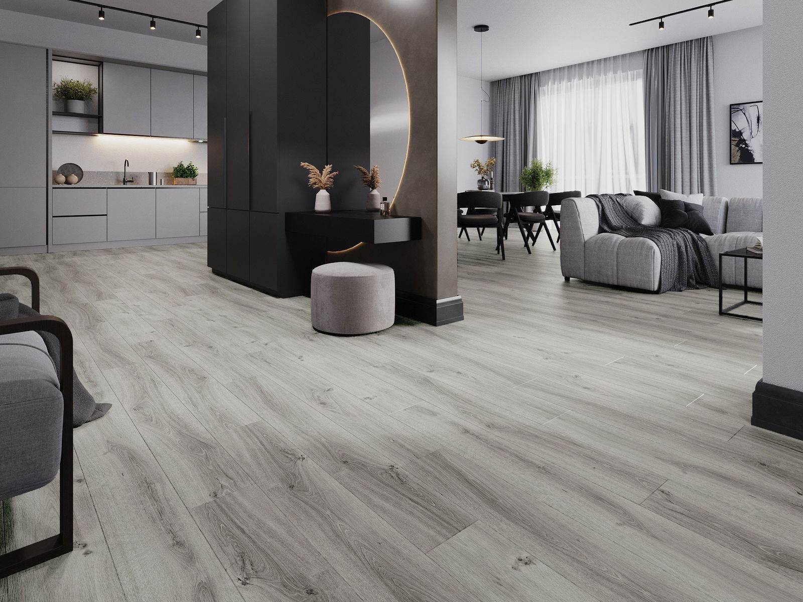 Panele posiadają 4-stronną fugę - każdy bok został wyfrezowany w taki sposób, by po ułożeniu powstało łączenie w kształcie litery V. Taki design sprawia, że podłoga nabiera wyraźniejszej struktury, co nadaje jej głębi i estetycznego charakteru. Efekt ten jest szczególnie ceniony w nowoczesnych aranżacjach, gdzie detale podkreślają wyjątkowy wygląd wnętrza.