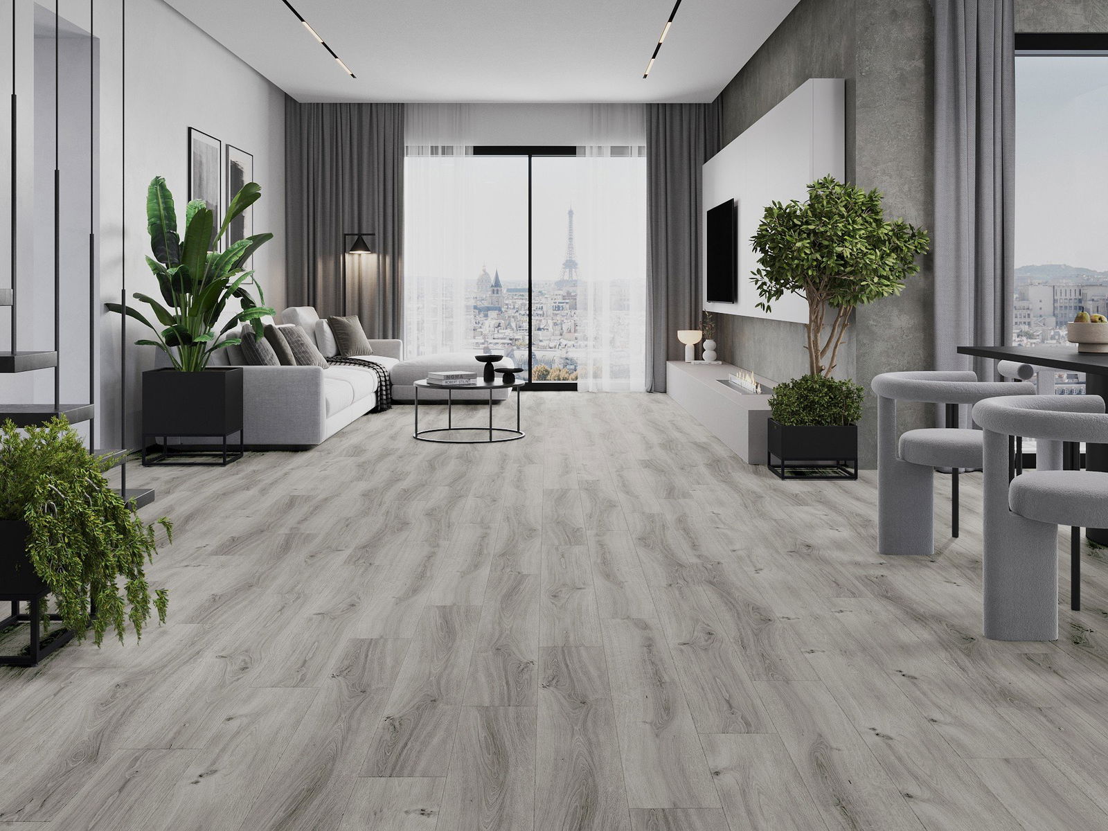 Panele winylowe oferują wyjątkową trwałość i estetykę. Ich grubość wynosi 6,5 mm, co zapewnia doskonałą odporność na uszkodzenia mechaniczne i zarysowania. Panele mają wymiary 1240 x 182 mm, a także 4-stronną V-Fugę, co podkreśla ich elegancki wygląd. Dzięki wodoodporności (100%) i zintegrowanemu podkładowi IXPE (1,5 mm), montaż jest prosty i efektywny. Powierzchnia ułatwiająca czyszczenie sprawia, że są idealnym rozwiązaniem do każdego wnętrza.