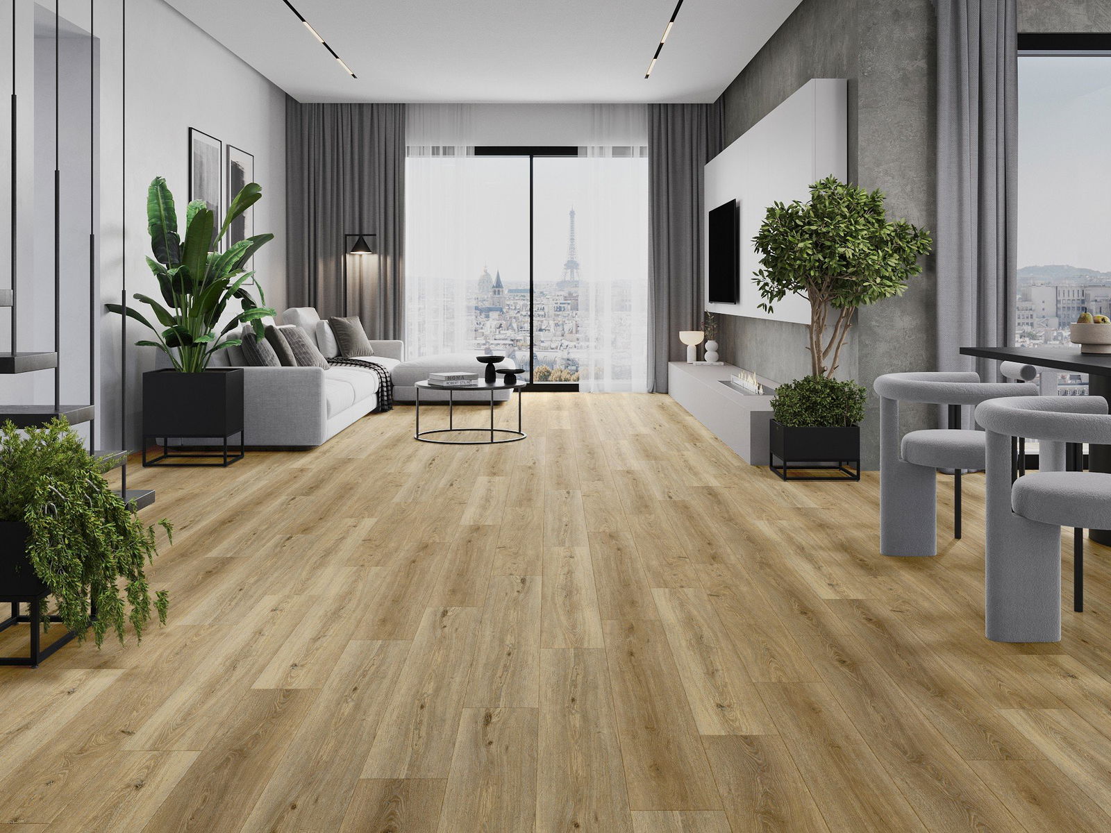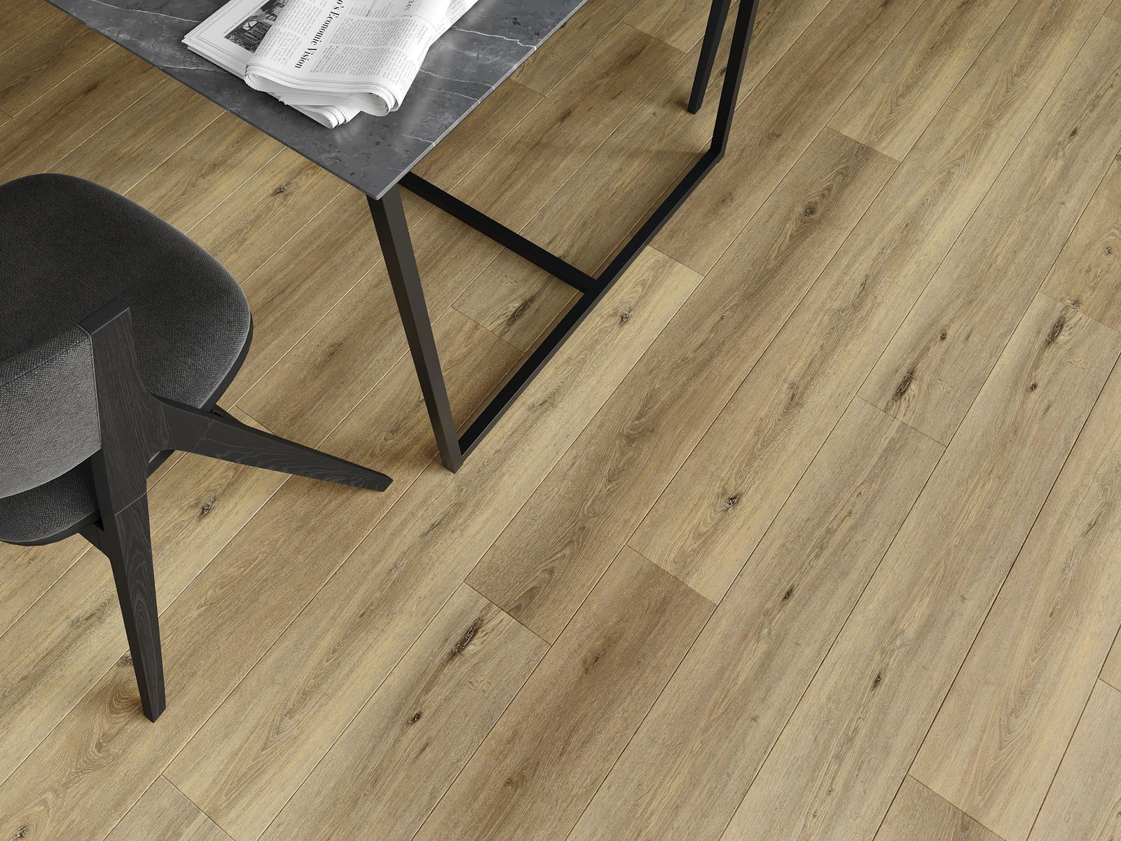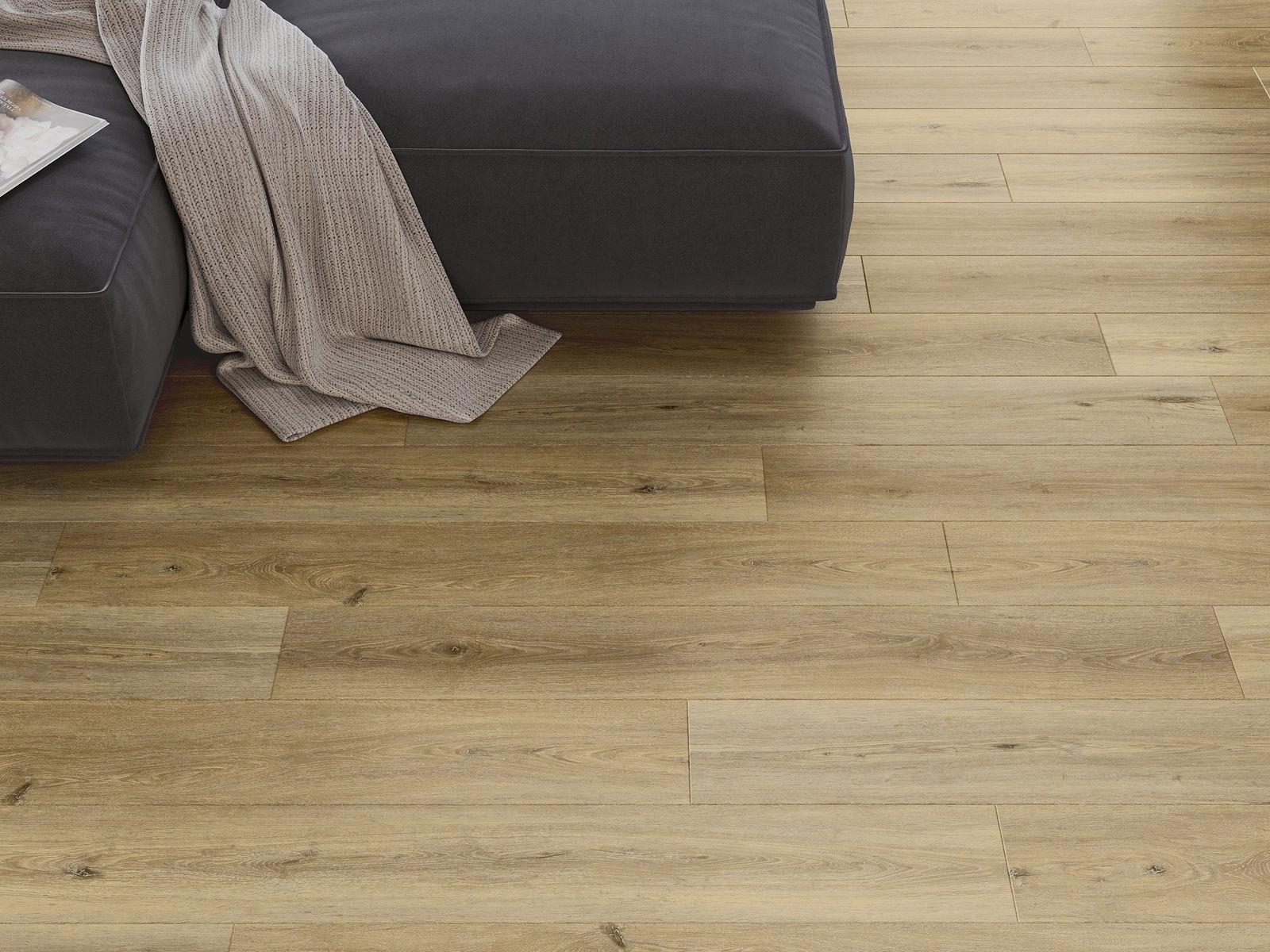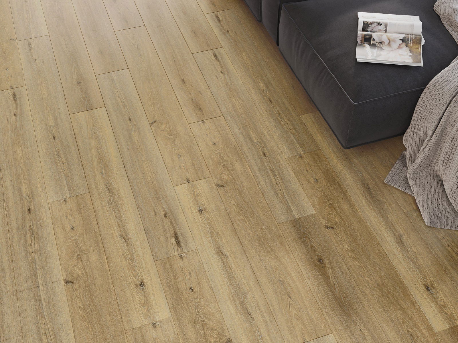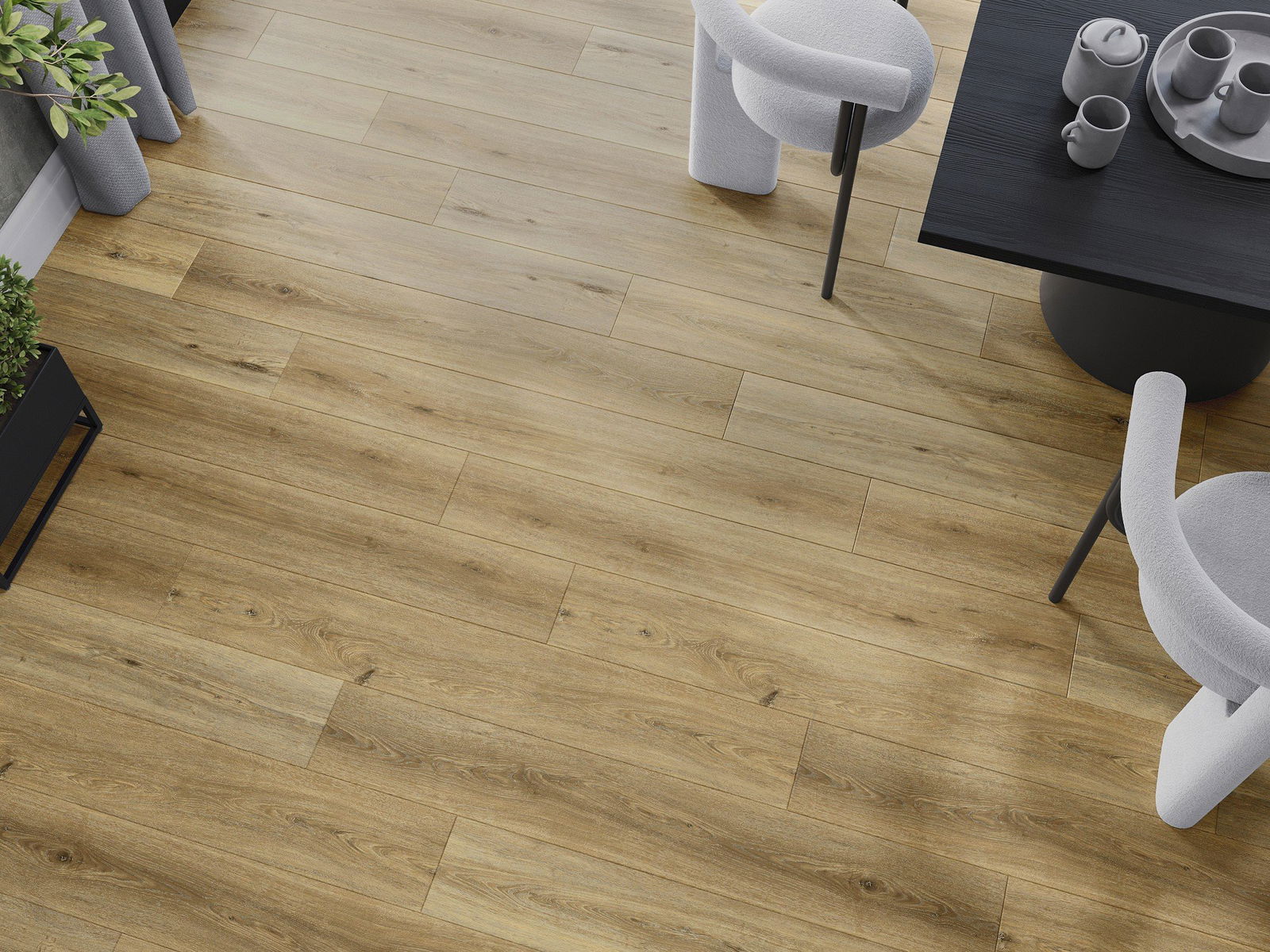 Panele posiadają 4-stronną fugę - każdy bok został wyfrezowany w taki sposób, by po ułożeniu powstało łączenie w kształcie litery V. Taki design sprawia, że podłoga nabiera wyraźniejszej struktury, co nadaje jej głębi i estetycznego charakteru. Efekt ten jest szczególnie ceniony w nowoczesnych aranżacjach, gdzie detale podkreślają wyjątkowy wygląd wnętrza.