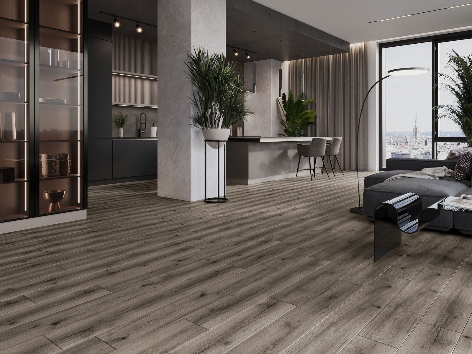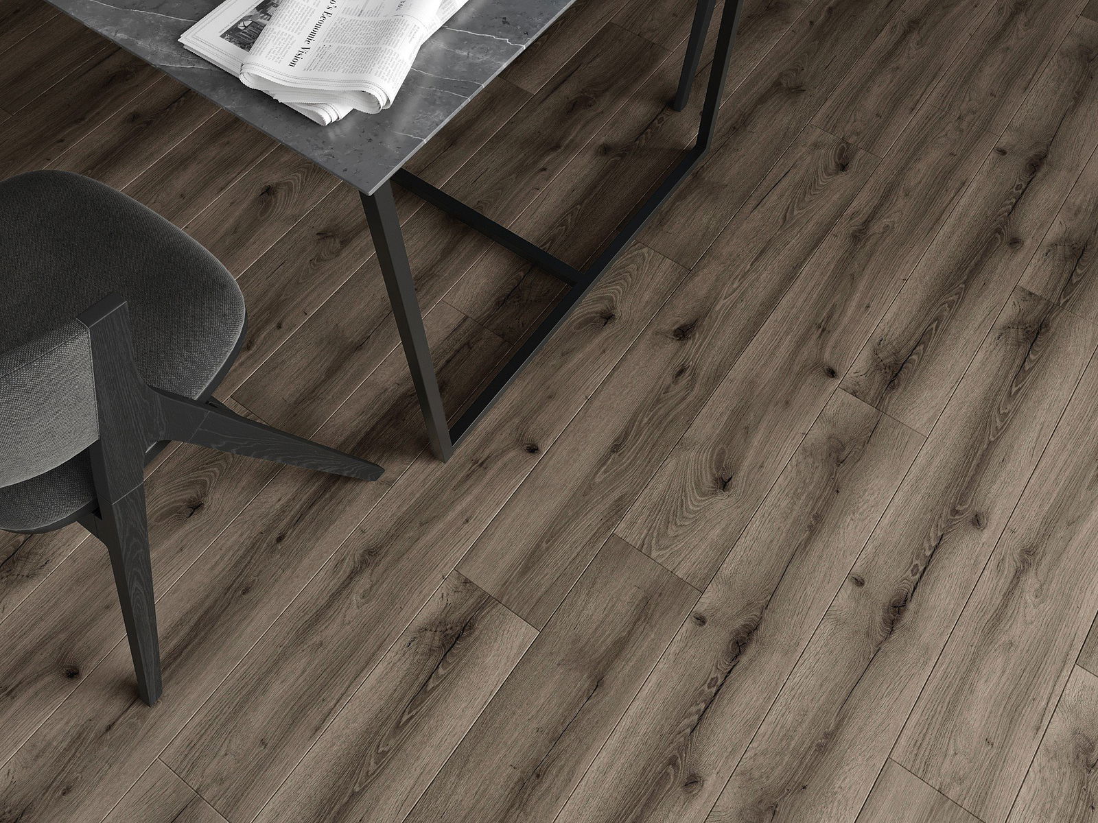 Panele posiadają 4-stronną fugę - każdy bok został wyfrezowany w taki sposób, by po ułożeniu powstało łączenie w kształcie litery V. Taki design sprawia, że podłoga nabiera wyraźniejszej struktury, co nadaje jej głębi i estetycznego charakteru. Efekt ten jest szczególnie ceniony w nowoczesnych aranżacjach, gdzie detale podkreślają wyjątkowy wygląd wnętrza.