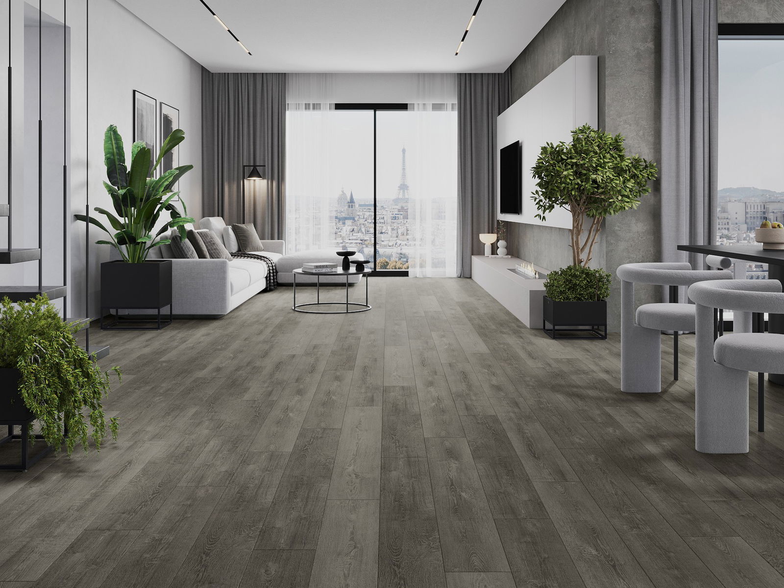 Panele posiadają 4-stronną fugę - każdy bok został wyfrezowany w taki sposób, by po ułożeniu powstało łączenie w kształcie litery V. Taki design sprawia, że podłoga nabiera wyraźniejszej struktury, co nadaje jej głębi i estetycznego charakteru. Efekt ten jest szczególnie ceniony w nowoczesnych aranżacjach, gdzie detale podkreślają wyjątkowy wygląd wnętrza.