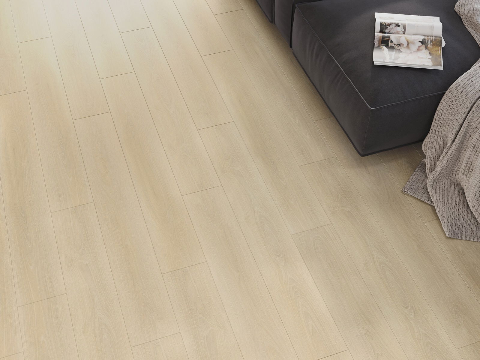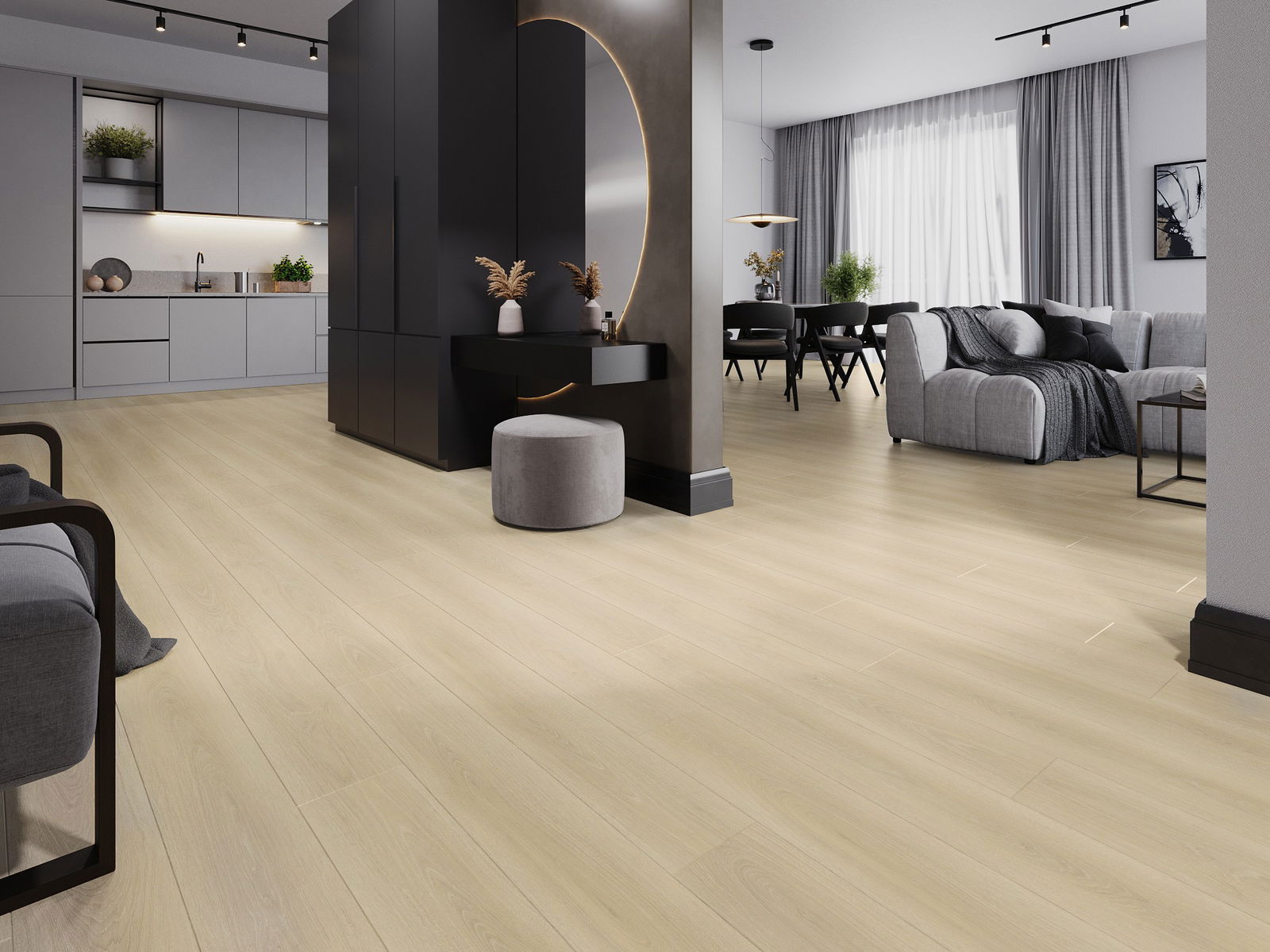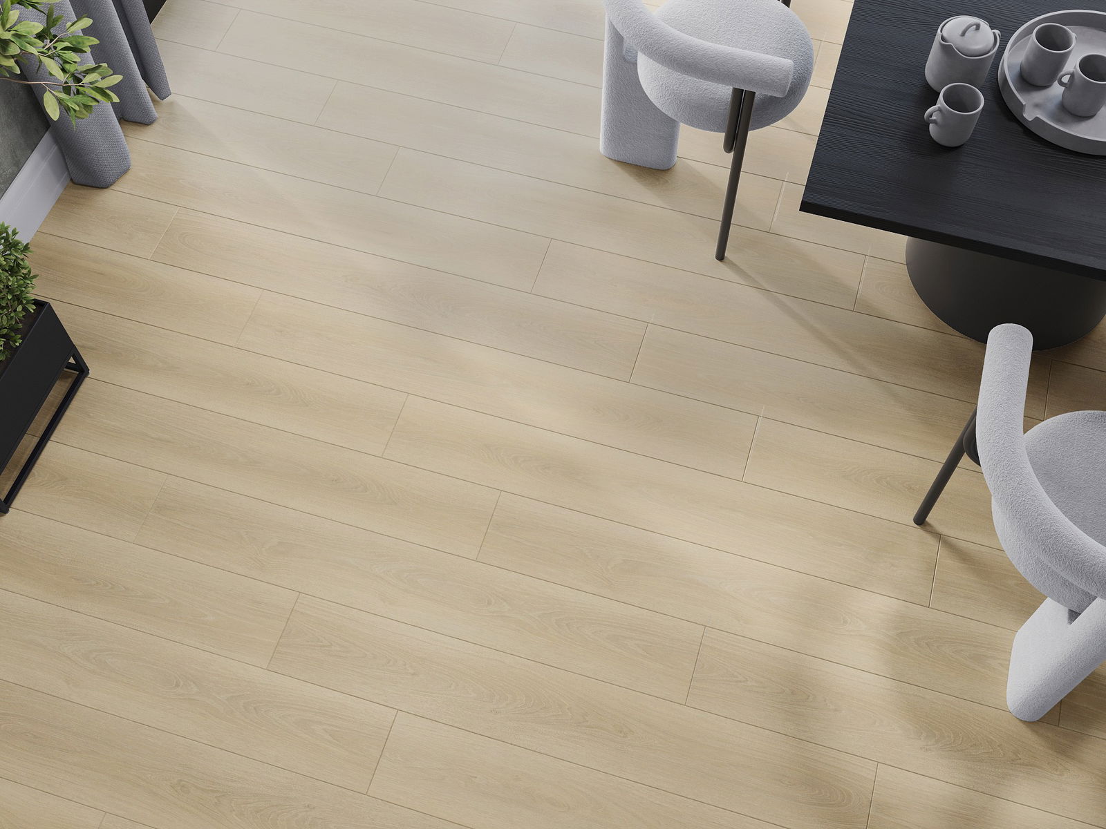 Panele posiadają 4-stronną fugę - każdy bok został wyfrezowany w taki sposób, by po ułożeniu powstało łączenie w kształcie litery V. Taki design sprawia, że podłoga nabiera wyraźniejszej struktury, co nadaje jej głębi i estetycznego charakteru. Efekt ten jest szczególnie ceniony w nowoczesnych aranżacjach, gdzie detale podkreślają wyjątkowy wygląd wnętrza.