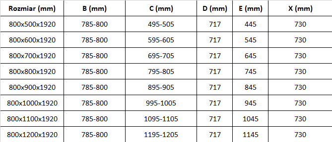 Rozmiar: 80x100 cm (drzwi 80 cm, ścianka 100 cm)