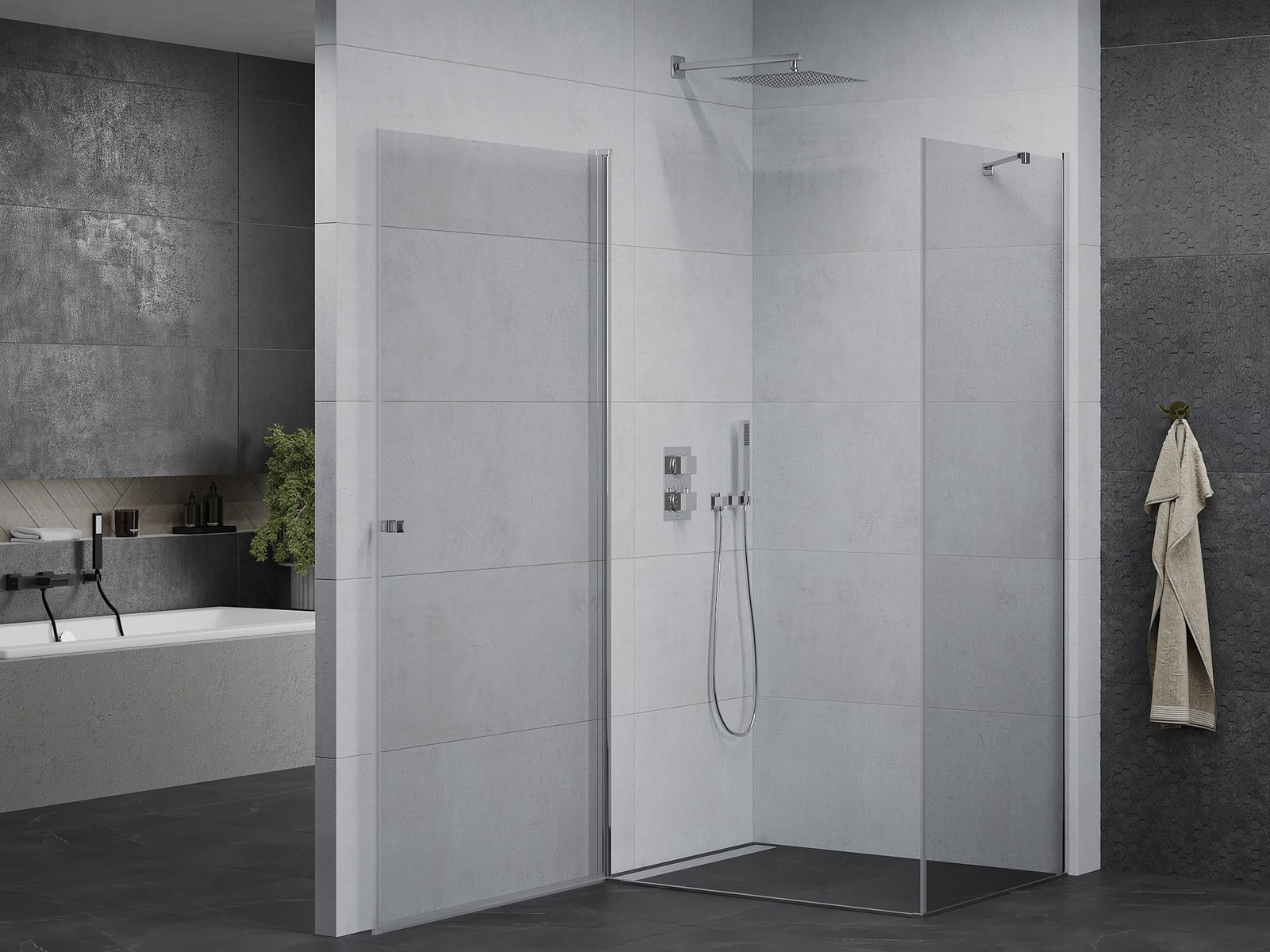 Dzięki zastosowaniu uniwersalnego systemu mocowania, drzwi prysznicowe mogą zostać zamontowane z prawej lub z lewej strony, zależnie od potrzeb. Dzięki temu możesz z łatwością zaprojektować prysznic dopasowany do przestrzeni łazienki.