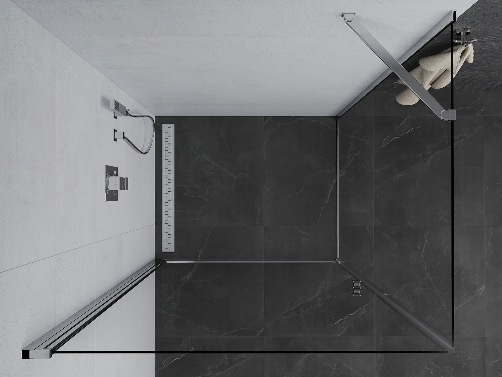Poręczny i wygodny uchwyt został wykonany z trwałego i odpornego metalu. Modny kształt w połączeniu z wykończeniem dopasowanym do koloru profili nadaje całości nowoczesnego i stylowego wyglądu, podkreślając estetykę każdej łazienki.