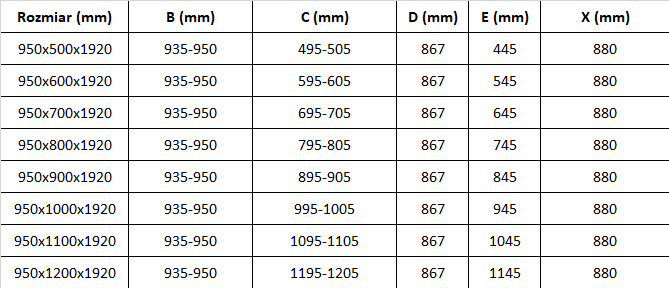 Rozmiar: 95x80 cm (drzwi 95 cm, ścianka 80 cm)
