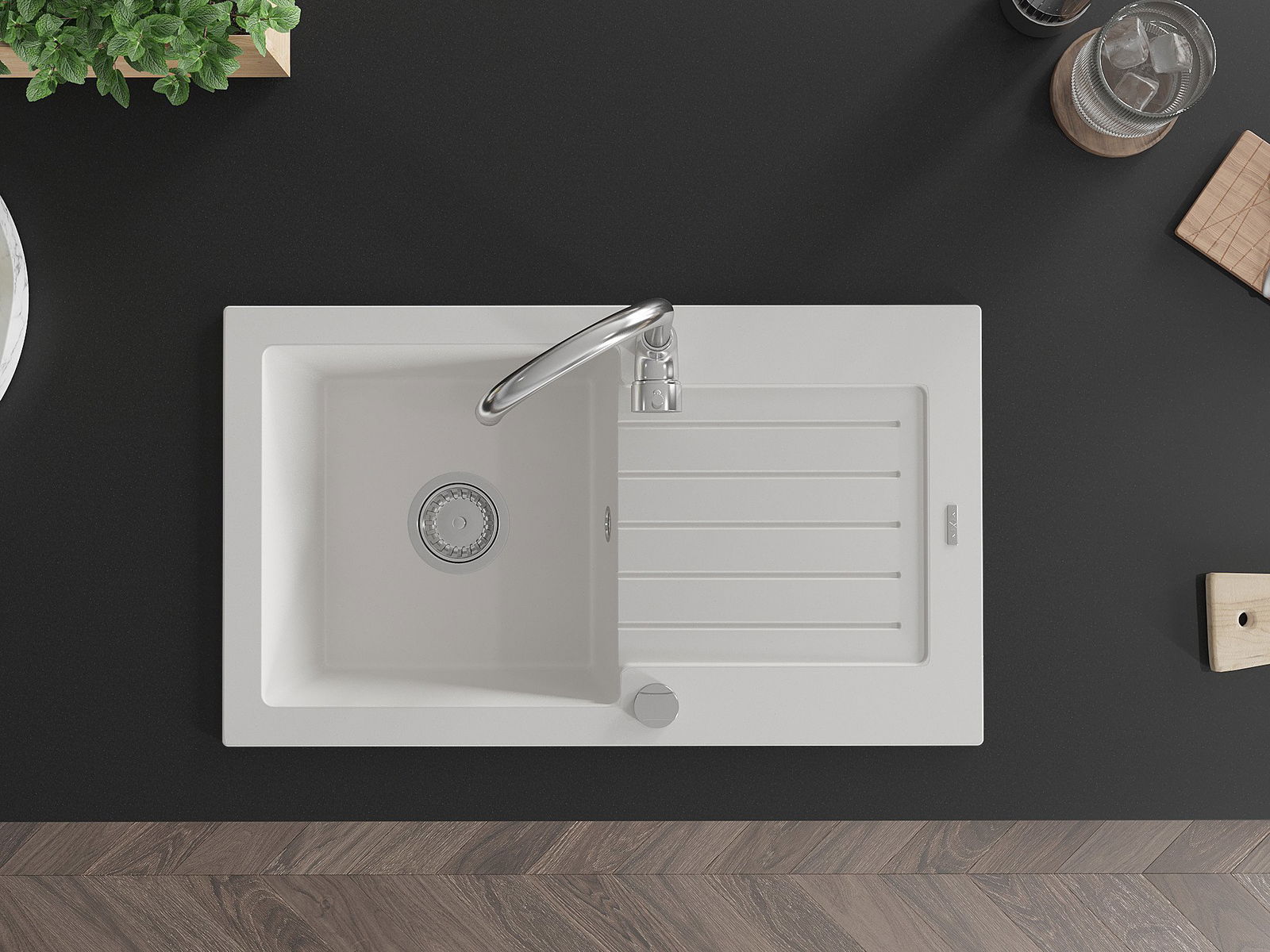 Mexen Pablo zlewozmywak granitowy 1-komorowy z ociekaczem 752 x 436 mm, biały, syfon chrom - 6510751010-20