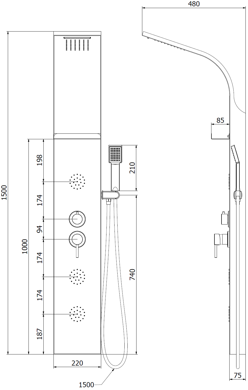 Specyfikacja produktu: Materiał: Stal nierdzewna Kolor: Chrom Wysokość:  148 cm Szerokość: 22 cm Ilość funkcji: 4 Praktyczna półka na kosmetyki Zintegrowana deszczownica Kaskadowy wypływ wody Słuchawka prysznicowa Wąż z osłoną ze stali nierdzewnej 150 cm Dysze silikonowe Anti-Calc ułatwiają usuwanie kamienia