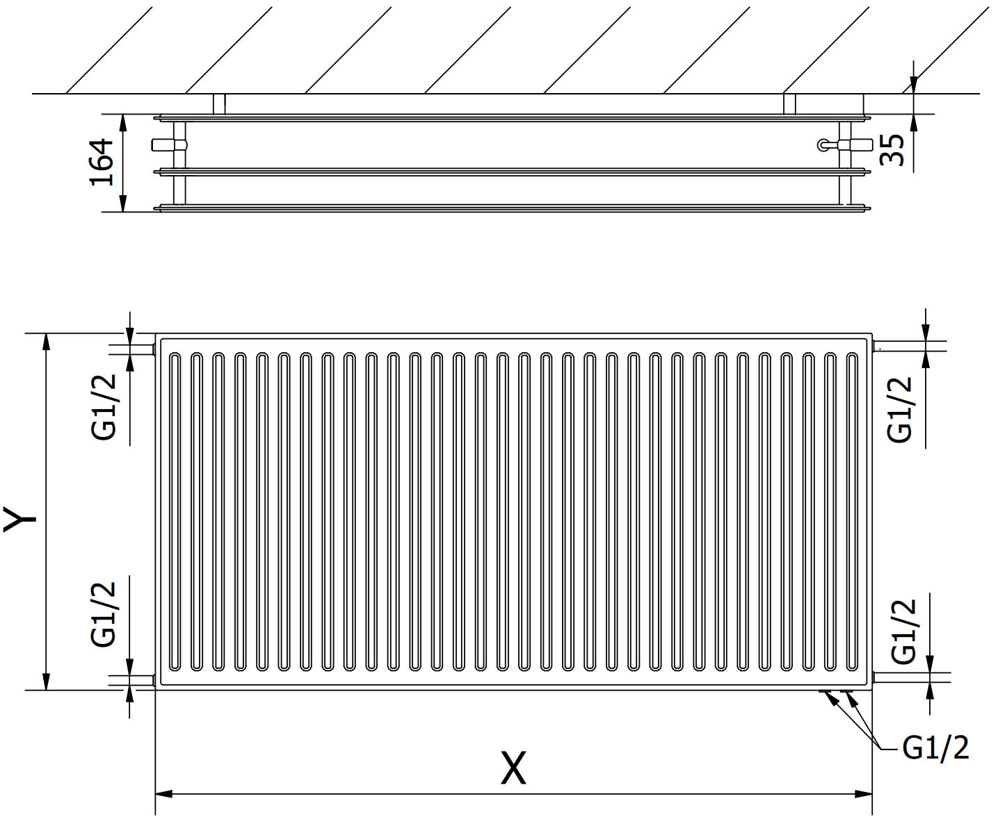 Zdjęcia przedstawiają grzejnik w rozmiarze 600 x 1200 mm.