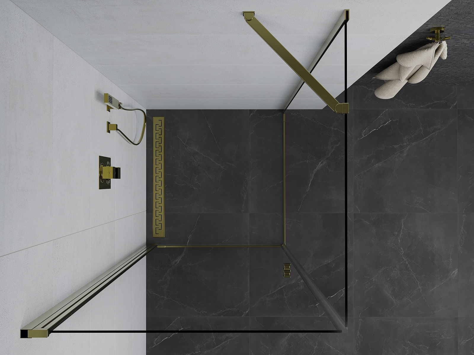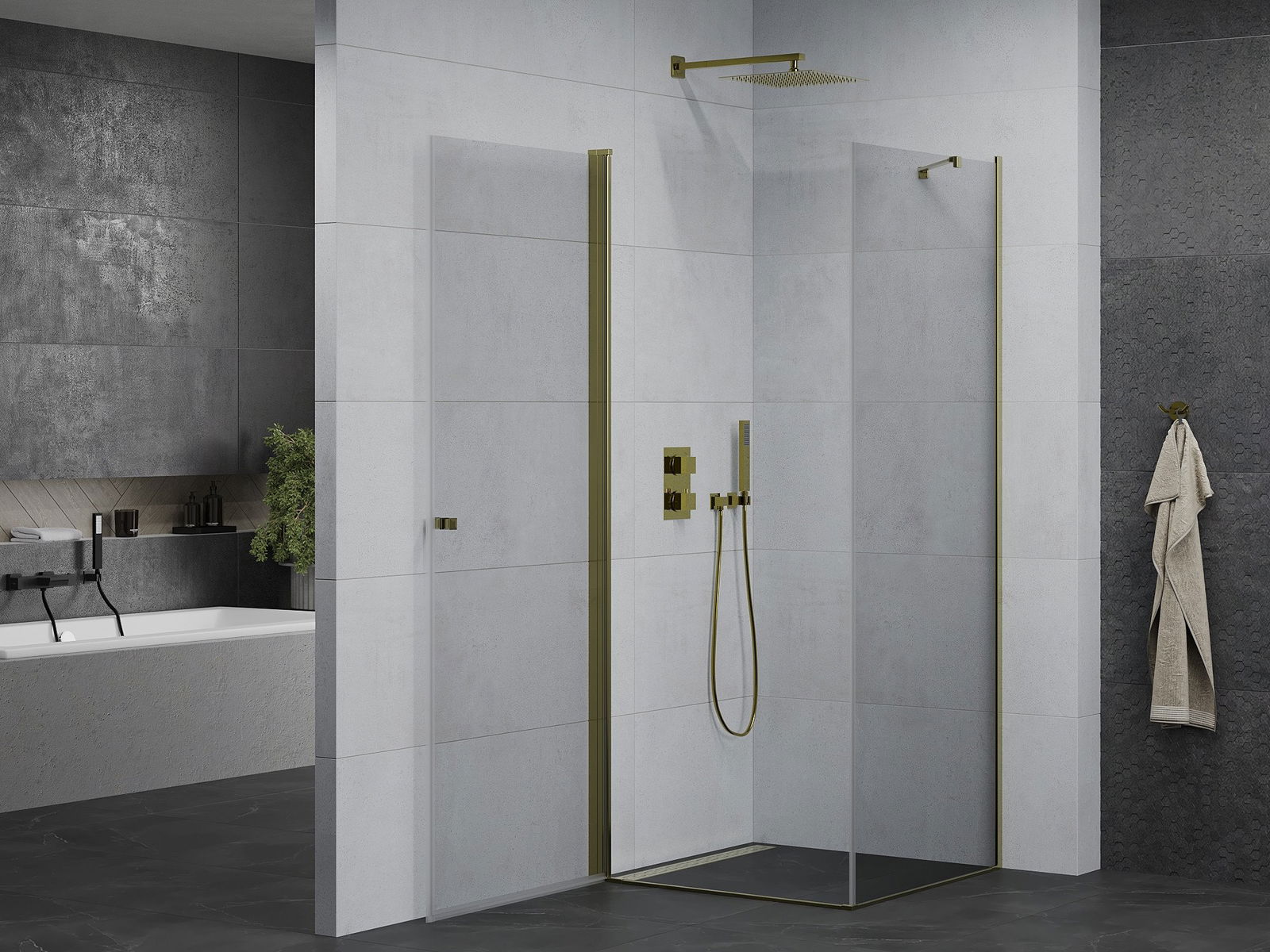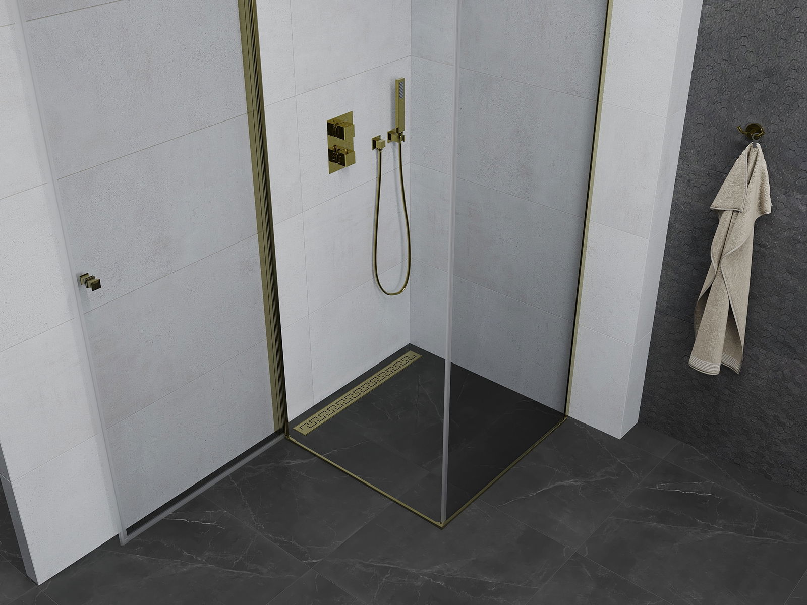 Poręczny i wygodny uchwyt został wykonany z trwałego i odpornego metalu. Modny kształt w połączeniu z wykończeniem dopasowanym do koloru profili nadaje całości nowoczesnego i stylowego wyglądu, podkreślając estetykę każdej łazienki.