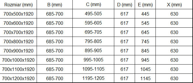 Rozmiar: 70x80 cm (drzwi 70 cm, ścianka 80 cm)