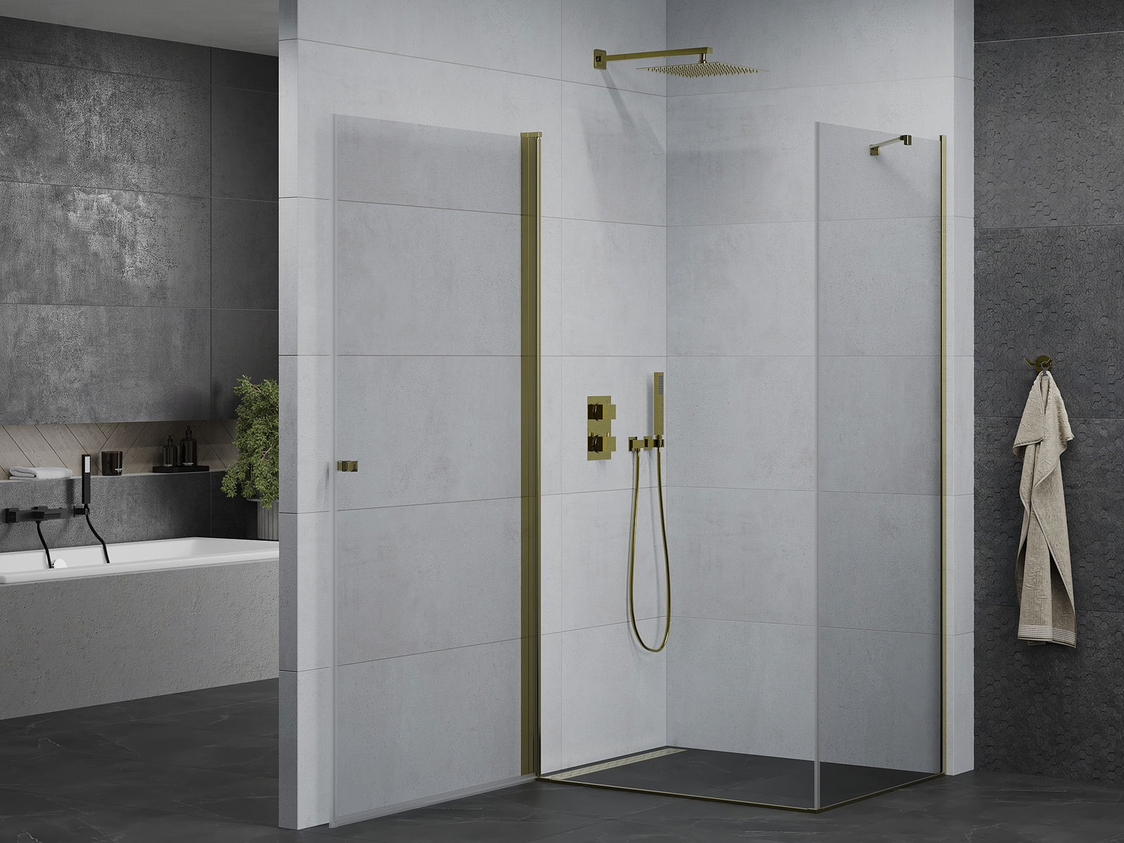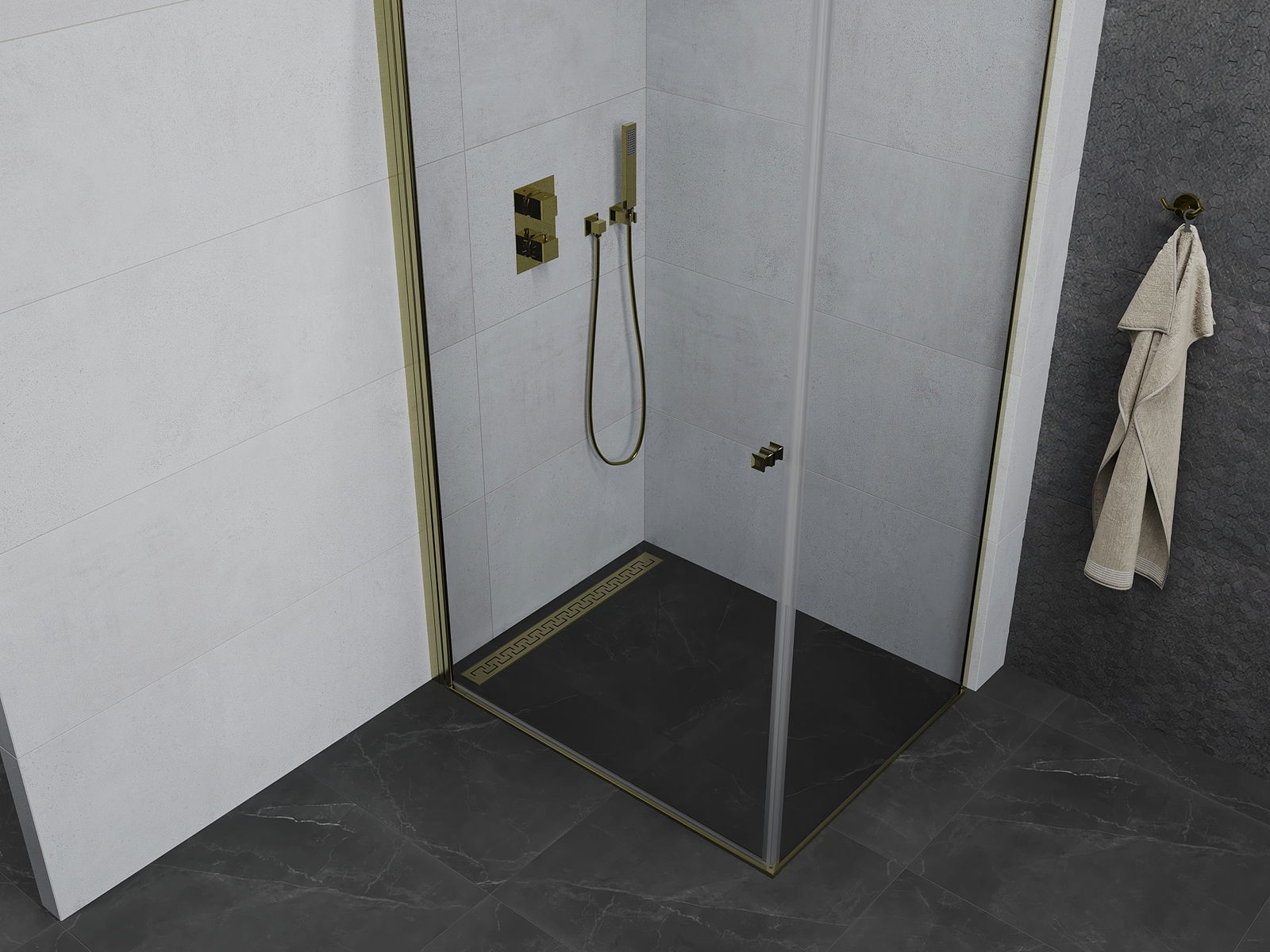 Poręczny i wygodny uchwyt został wykonany z trwałego i odpornego metalu. Modny kształt w połączeniu z wykończeniem dopasowanym do koloru profili nadaje całości nowoczesnego i stylowego wyglądu, podkreślając estetykę każdej łazienki.