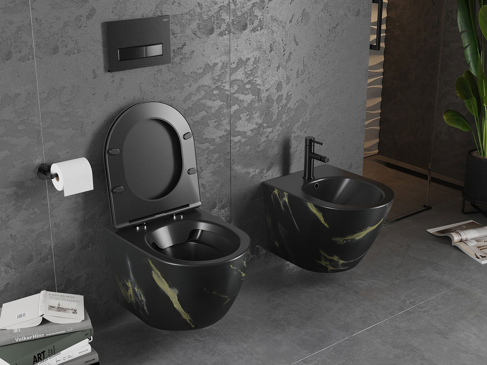 Cienka deska o wyjątkowo ergonomicznym kształcie i niezwykle smukłym wyglądzie. Konstrukcja idealnie dopasowuje się do nowoczesnego wnętrza łazienki, dając wrażenie lekkości. Doskonały wybór do minimalistycznych aranżacji.