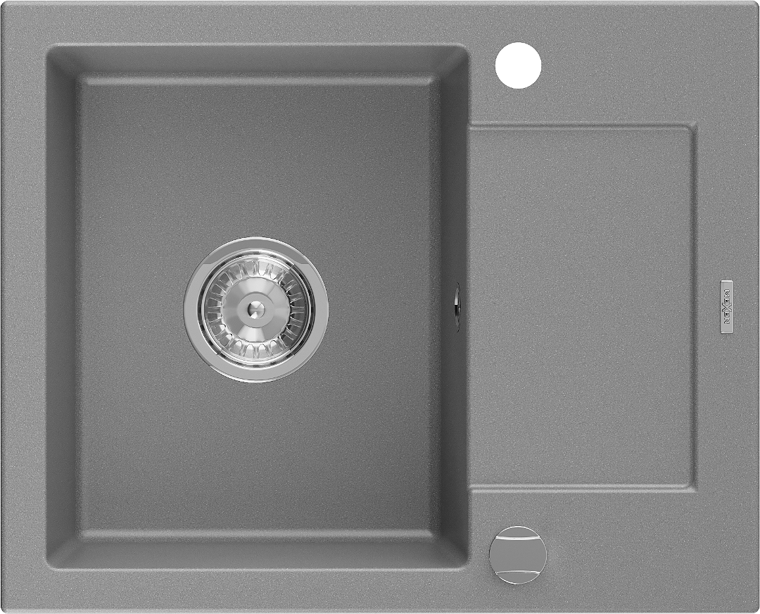 Mexen Enzo zlewozmywak granitowy 1-komorowy z ociekaczem 576 x 465 mm, szary, syfon chrom - 6506571005-71