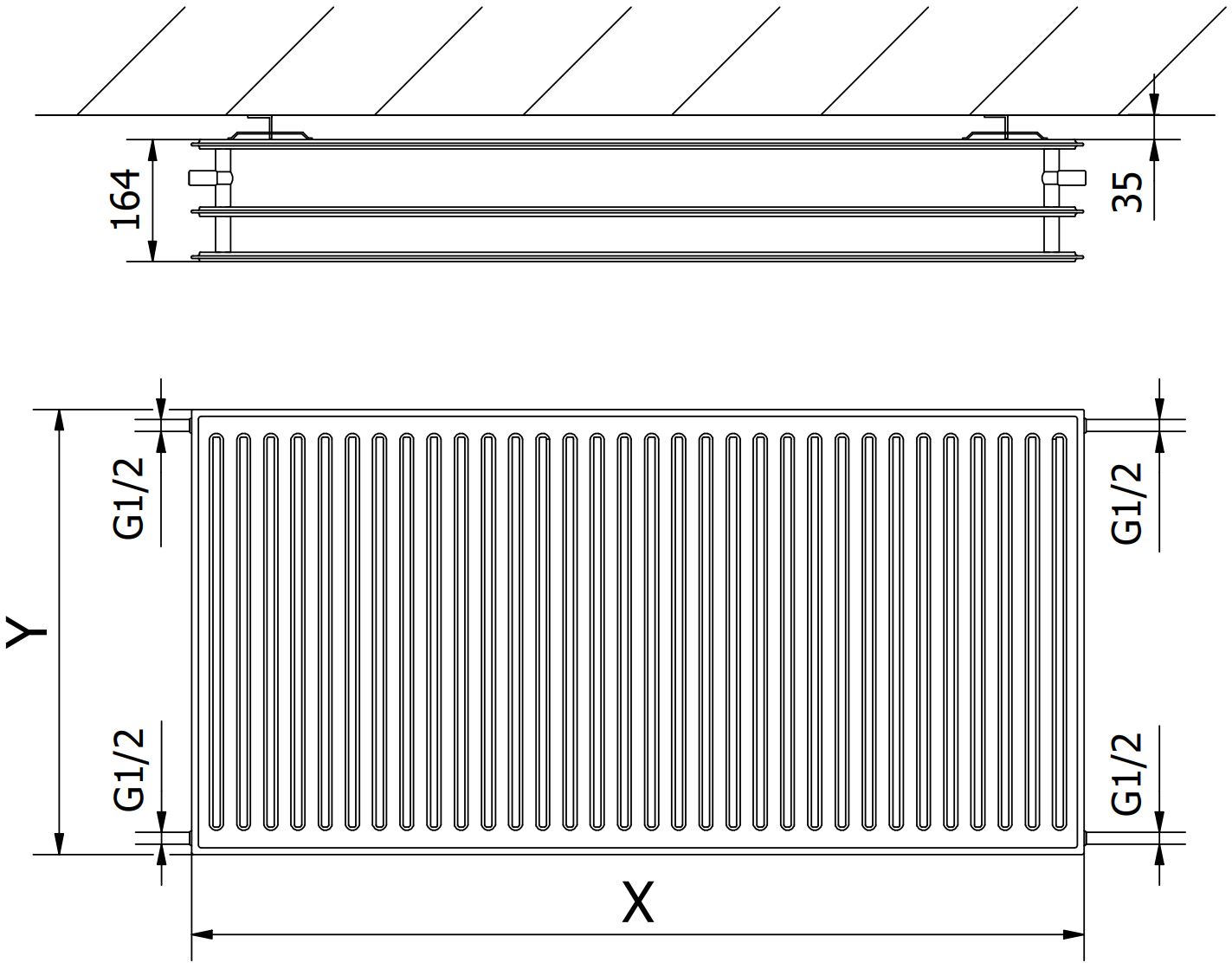 Zdjęcia przedstawiają grzejnik w rozmiarze 600 x 1200 mm.