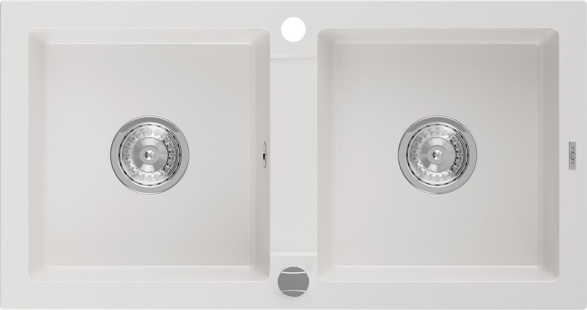 Mexen Mario zlewozmywak granitowy 2-komorowy 820 x 436 mm, biały, syfon chrom - 6504822000-20
