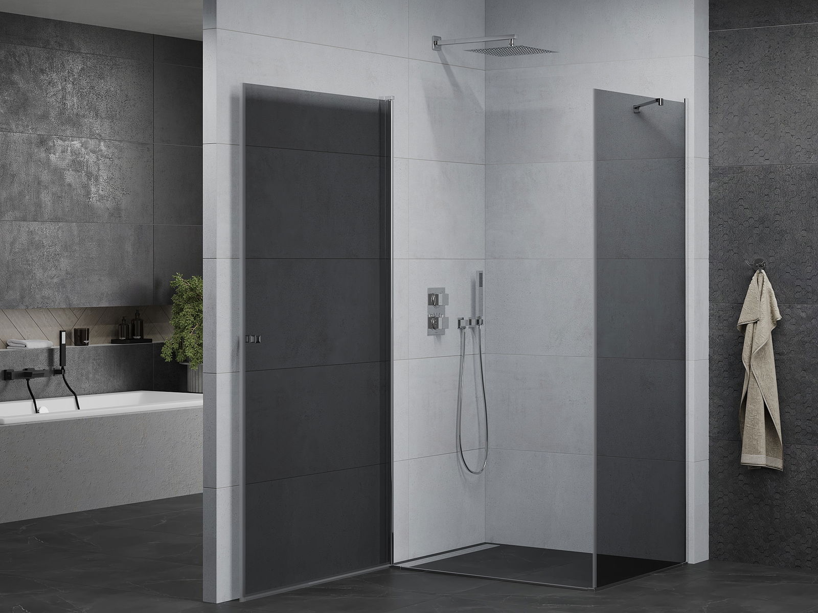 Dzięki zastosowaniu uniwersalnego systemu mocowania, drzwi prysznicowe mogą zostać zamontowane z prawej lub z lewej strony, zależnie od potrzeb. Dzięki temu możesz z łatwością zaprojektować prysznic dopasowany do przestrzeni łazienki.