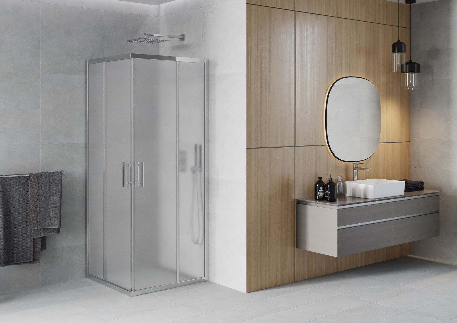 Drzwi przesuwne poruszają się po specjalnych prowadnicach i nie wymagają dodatkowej przestrzeni, żeby je otworzyć, dlatego sprawdzą się w mniejszych łazienkach. Dzięki podwójnym rolkom z trwałego tworzywa sztucznego ich ruch jest płynny.