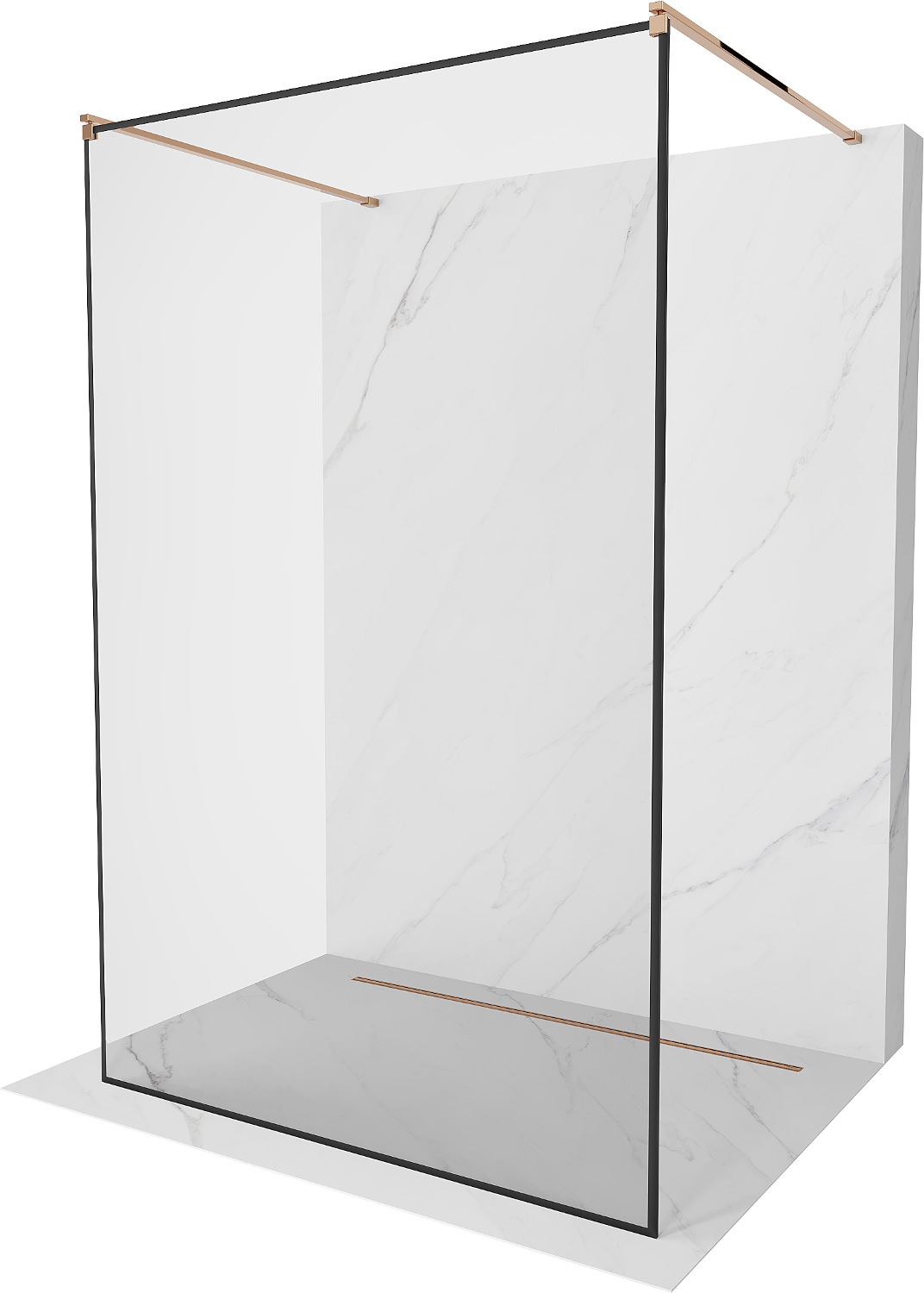 Mexen Kioto ścianka prysznicowa wolnostojąca 160 x 200 cm, czarna ramka 8 mm, różowe złoto - 800-160-002-60-70