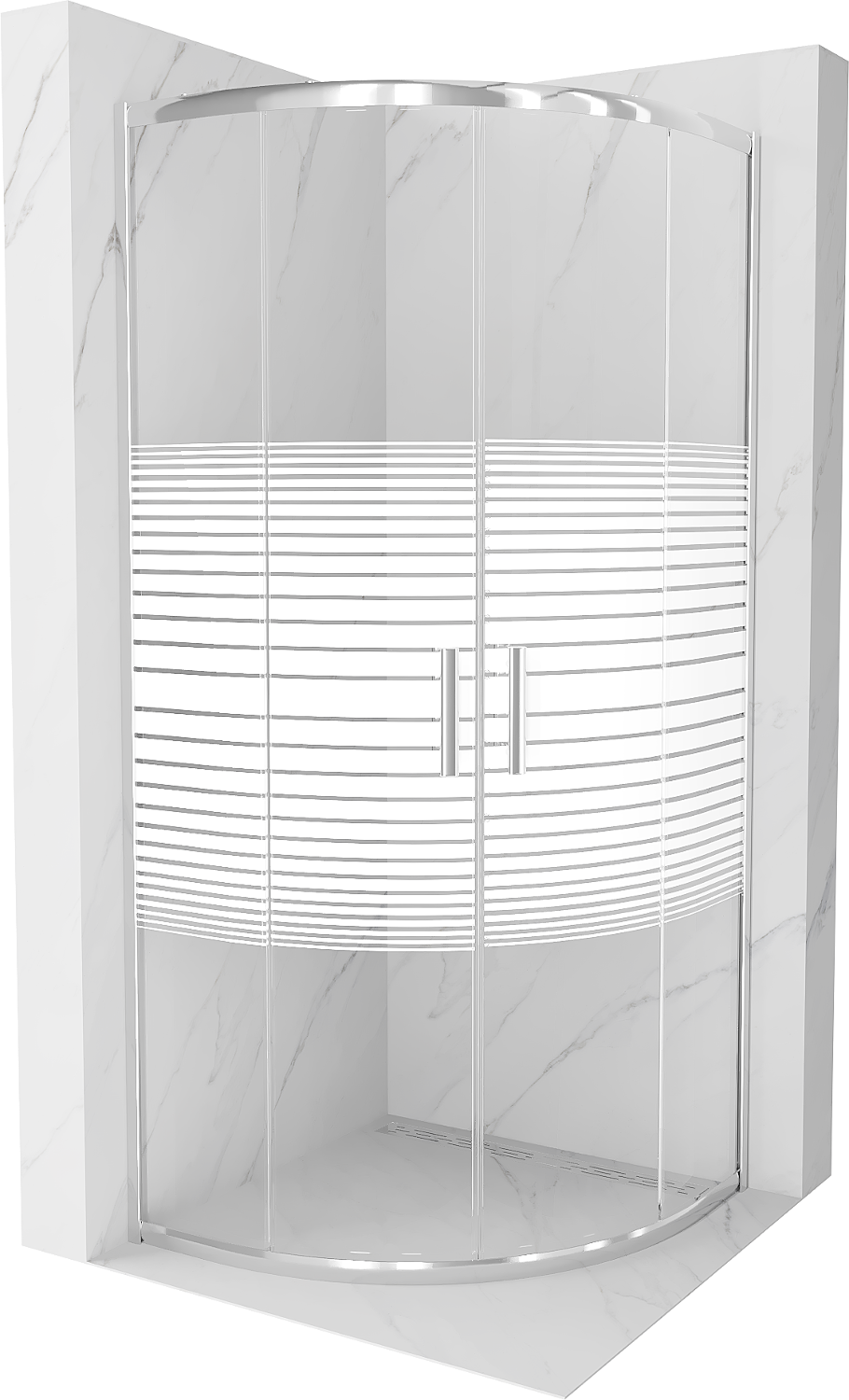Mexen Rio kabina prysznicowa półokrągła 80 x 80 cm, białe pasy, chrom - 863-080-080-01-20