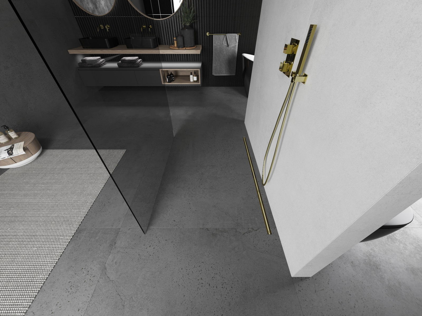 Mexen Kioto ścianka prysznicowa wolnostojąca 100 x 200 cm, transparent 8 mm, złota szczotkowana - 800-100-002-55-00