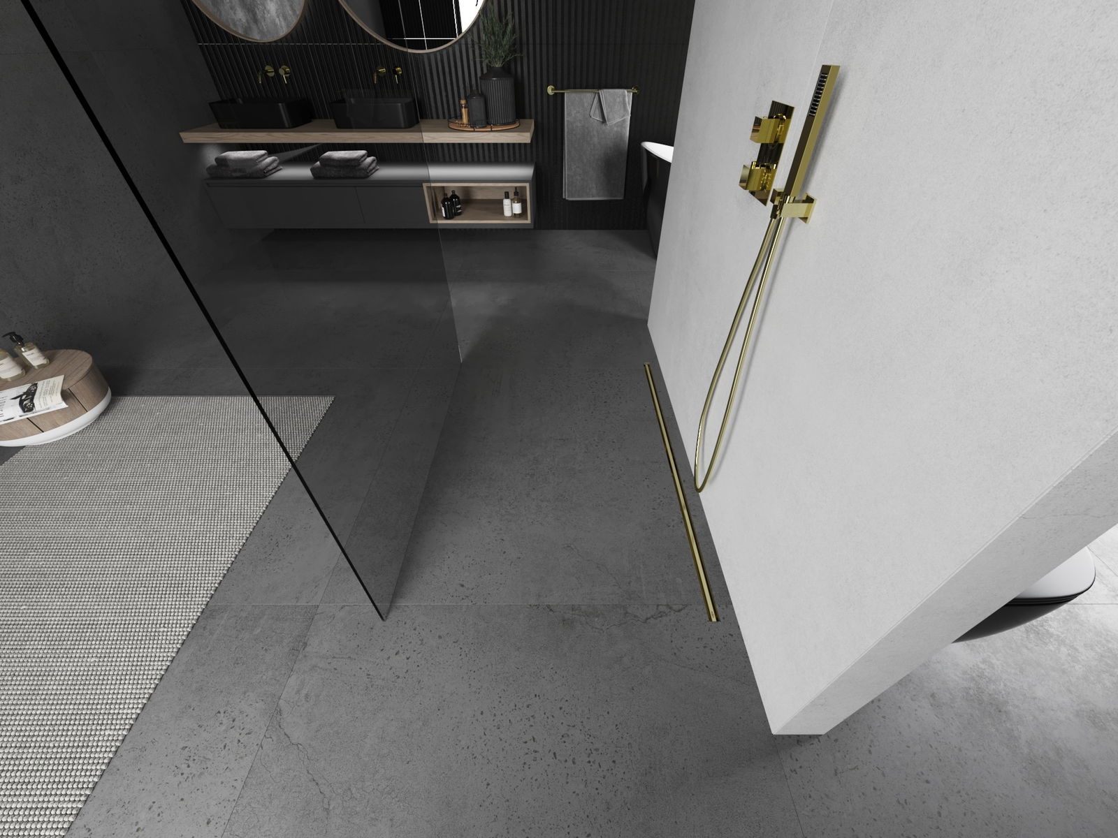 Mexen Kioto ścianka prysznicowa wolnostojąca 150 x 200 cm, transparent 8 mm, złota szczotkowana - 800-150-002-55-00