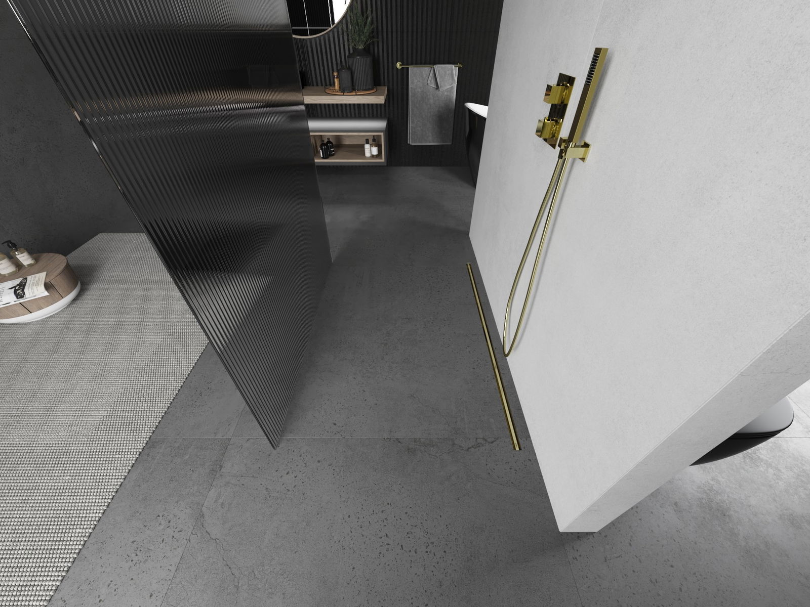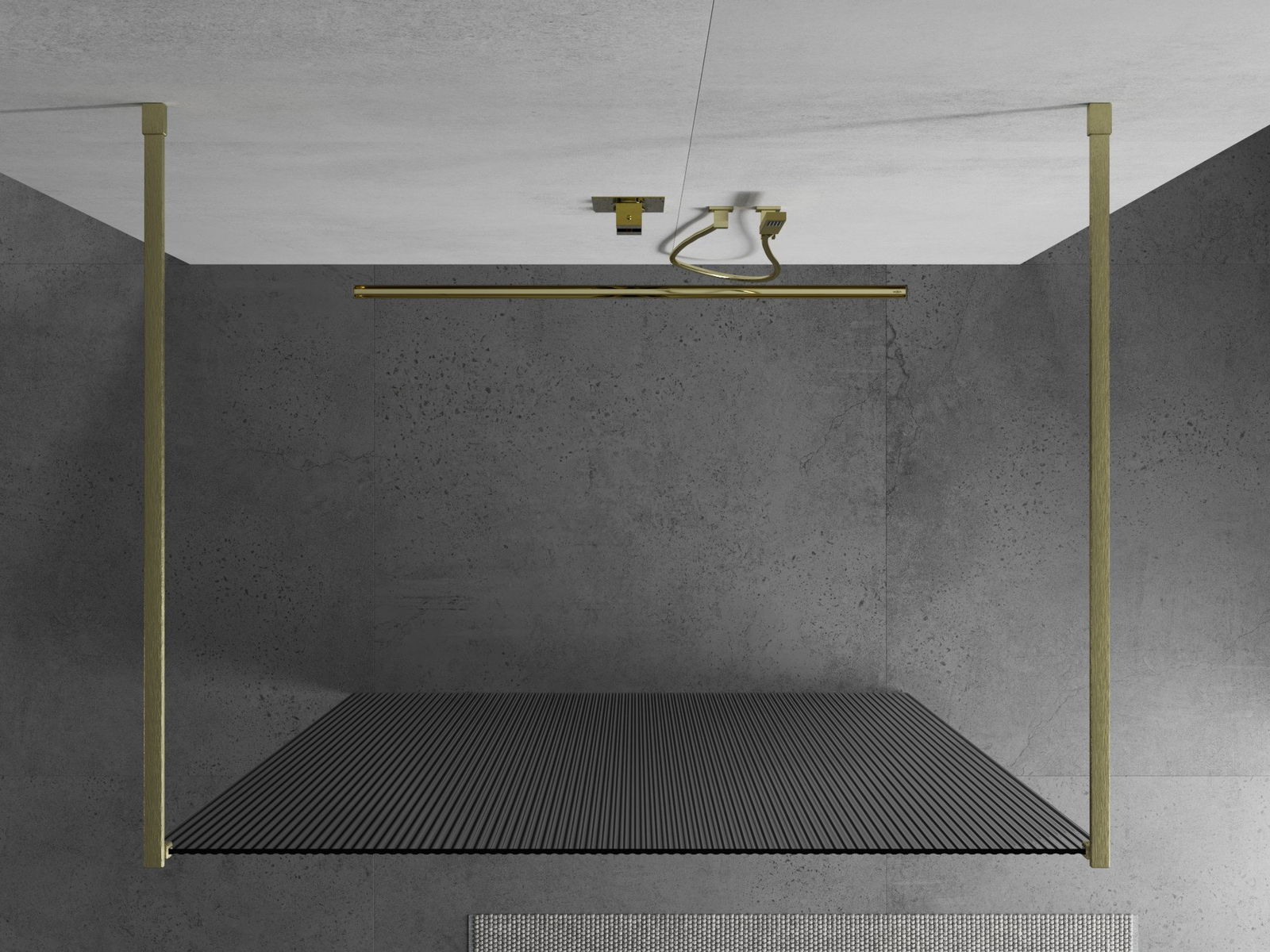 Mexen Kioto ścianka prysznicowa wolnostojąca 120 x 200 cm, prążki 8 mm, złota szczotkowana - 800-120-002-55-09