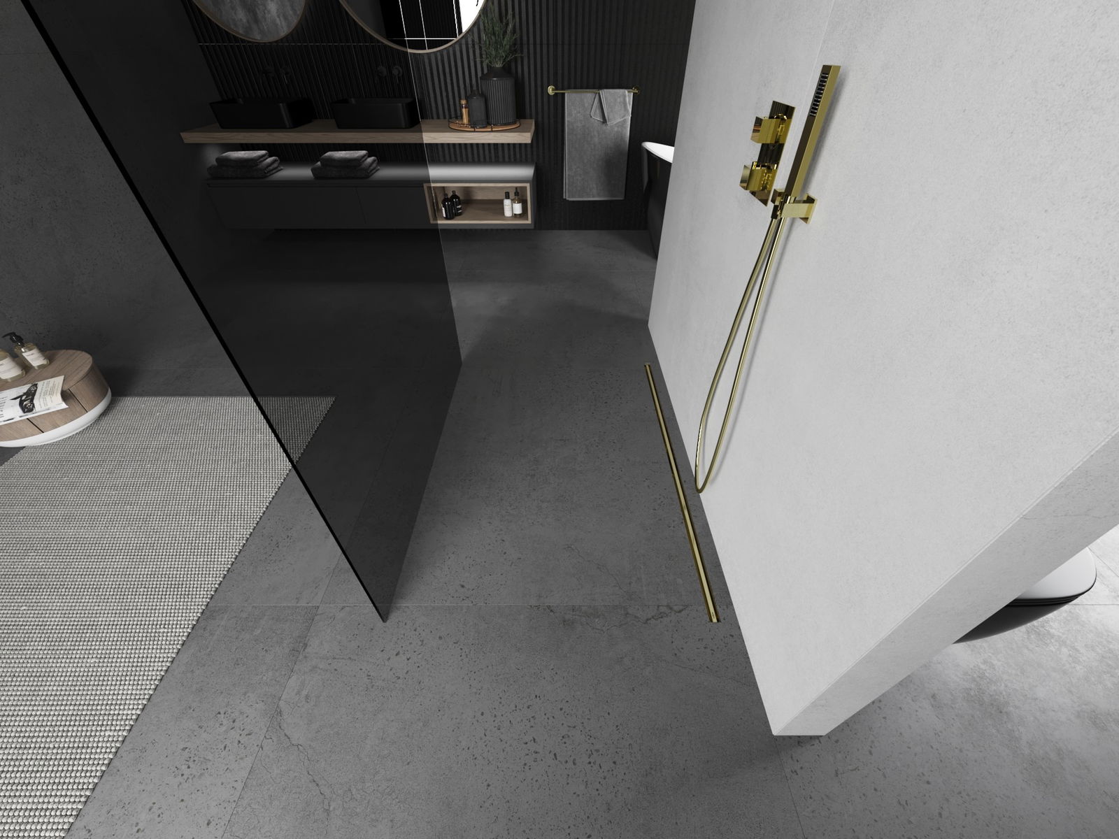 Mexen Kioto ścianka prysznicowa wolnostojąca 130 x 200 cm, grafit 8 mm, złota szczotkowana - 800-130-002-55-40