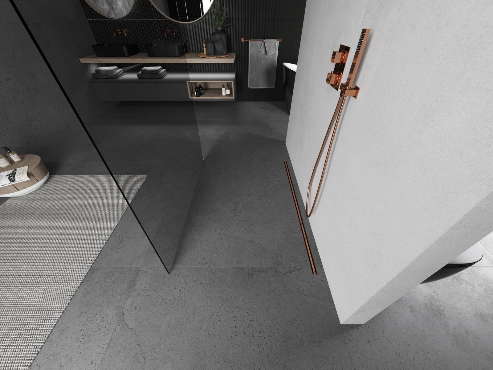 Mexen Kioto ścianka prysznicowa wolnostojąca 125 x 200 cm, transparent 8 mm, miedź szczotkowana - 800-125-002-65-00