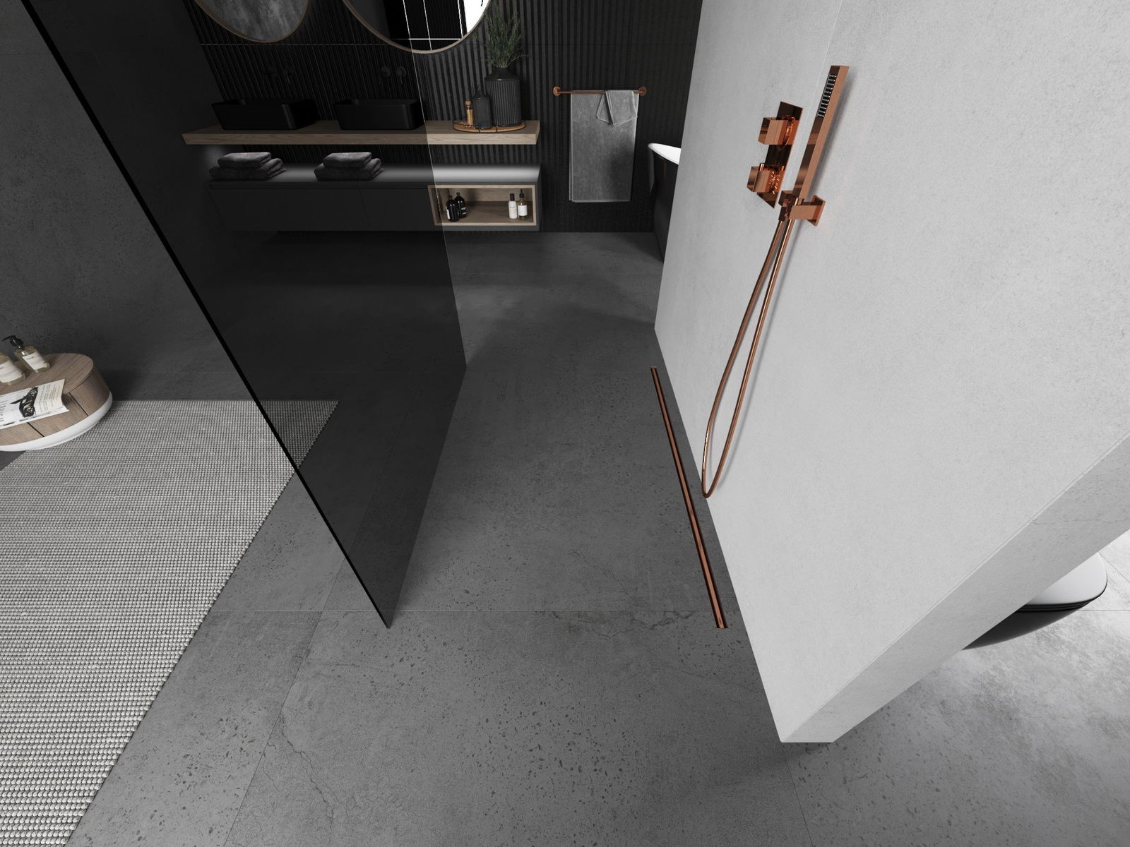Mexen Kioto ścianka prysznicowa wolnostojąca 110 x 200 cm, grafit 8 mm, miedź szczotkowana - 800-110-002-65-40