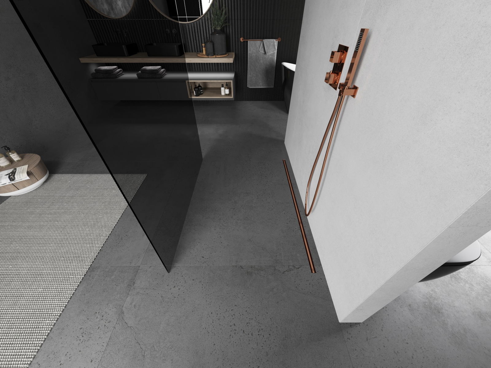 Mexen Kioto ścianka prysznicowa wolnostojąca 120 x 200 cm, grafit 8 mm, miedź szczotkowana - 800-120-002-65-40