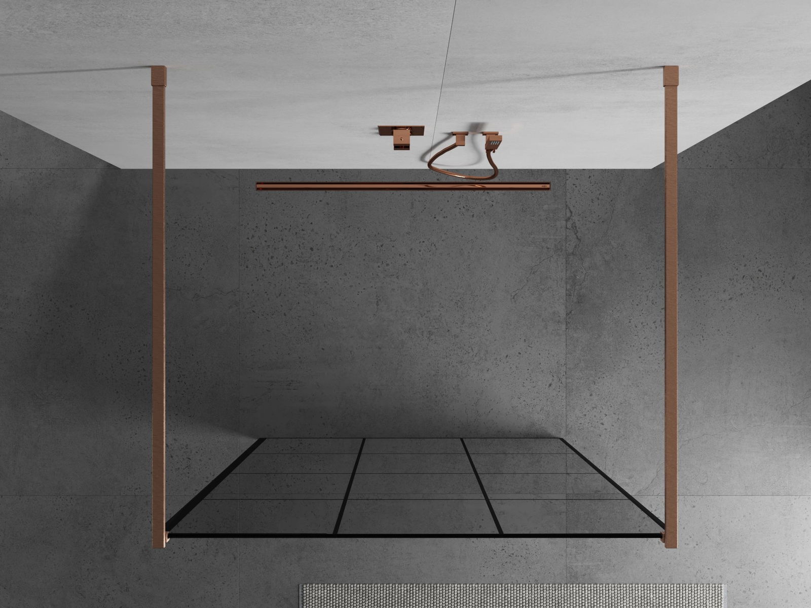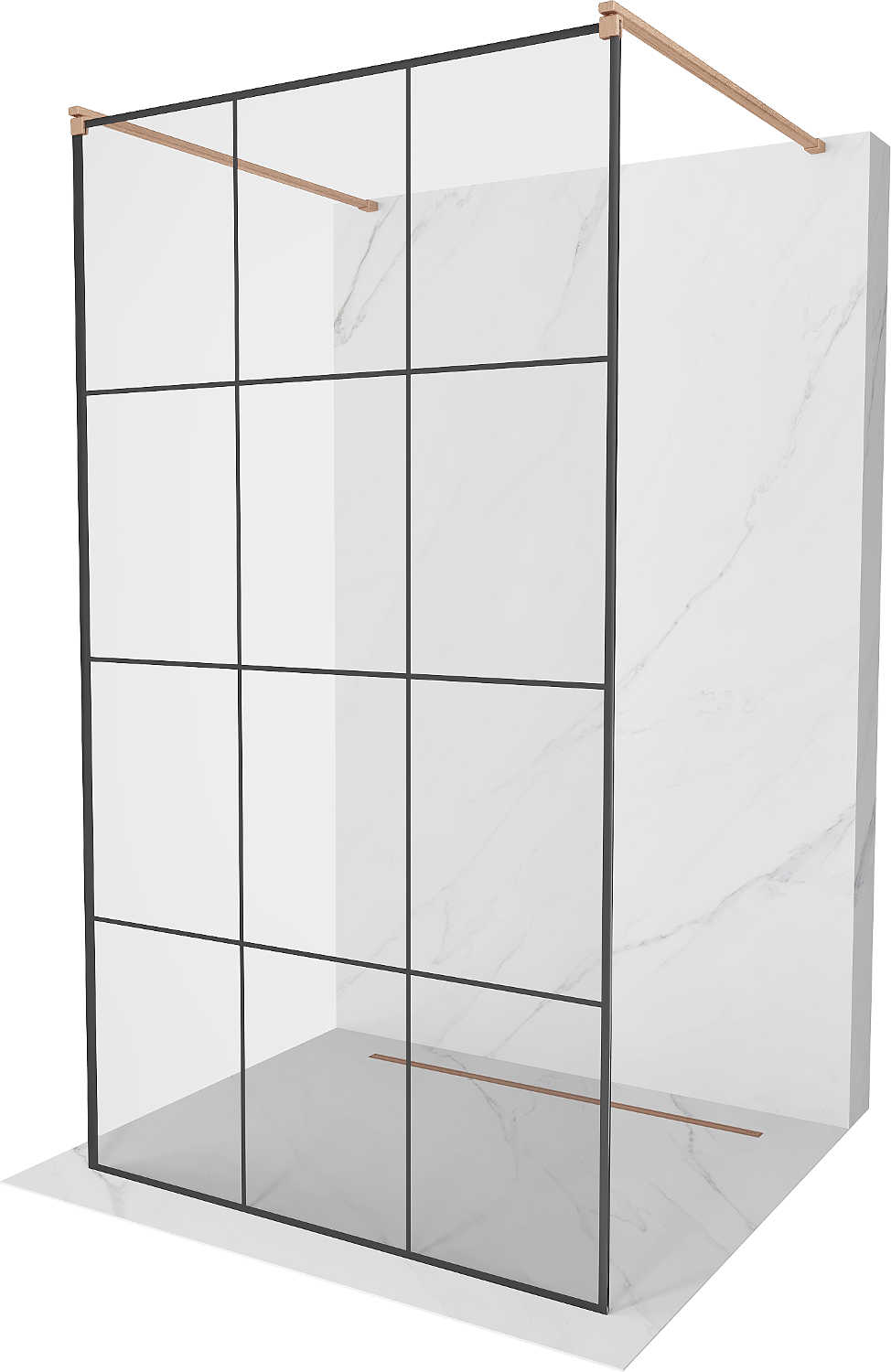 Mexen Kioto ścianka prysznicowa wolnostojąca 100 x 200 cm, czarna kratka 8 mm, miedź szczotkowana - 800-100-002-65-77
